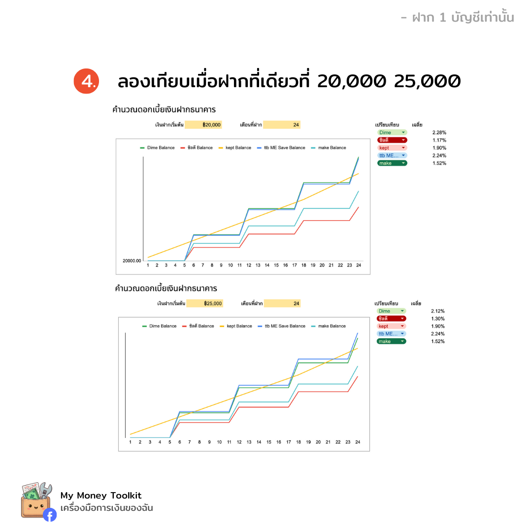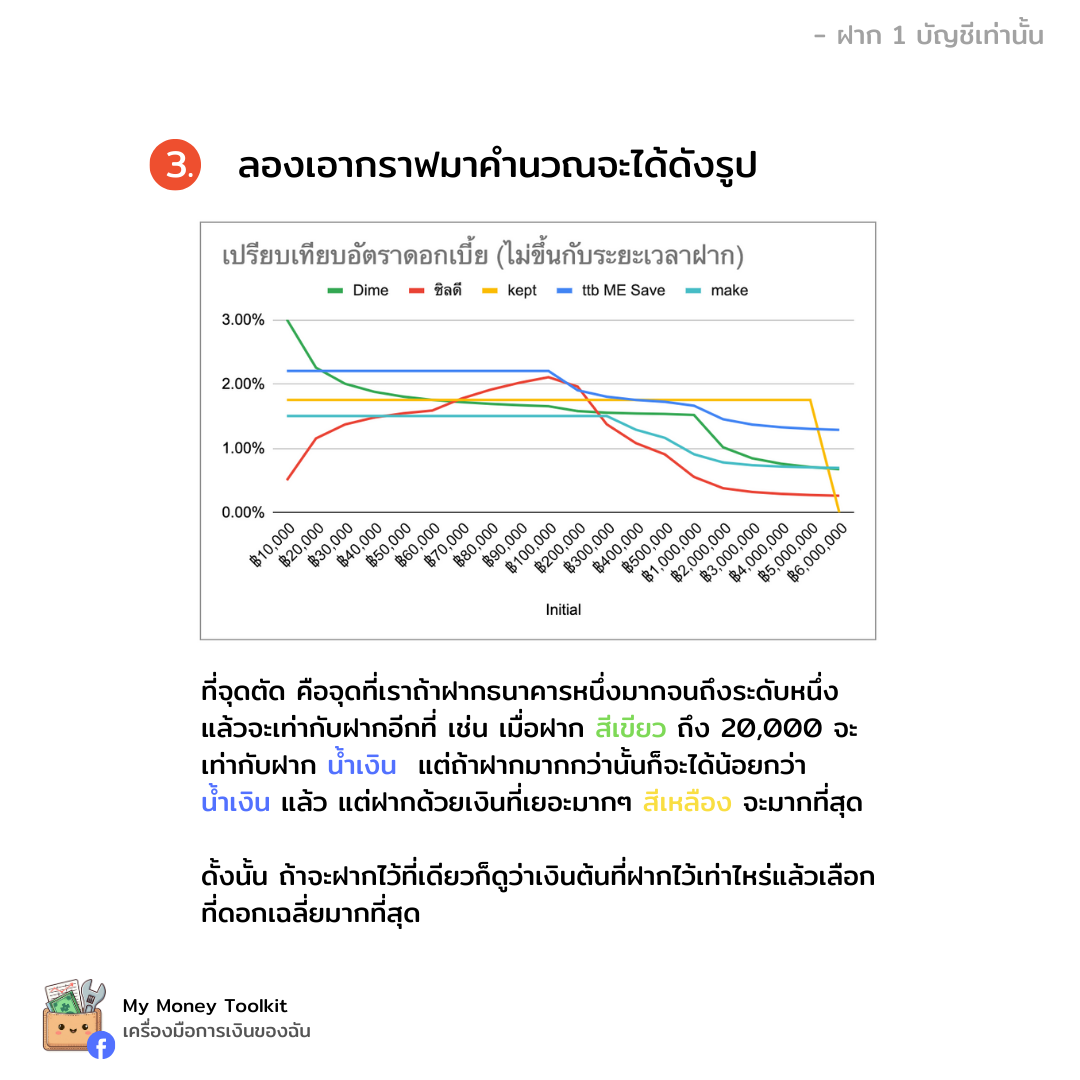 ลองคำนวณดอกเบี้ยธนาคาร กันว่าถ้าฝากถึงจุดไหนแล้วจะฝากที่อื่นจะได้ดอกเยอะสุดกัน