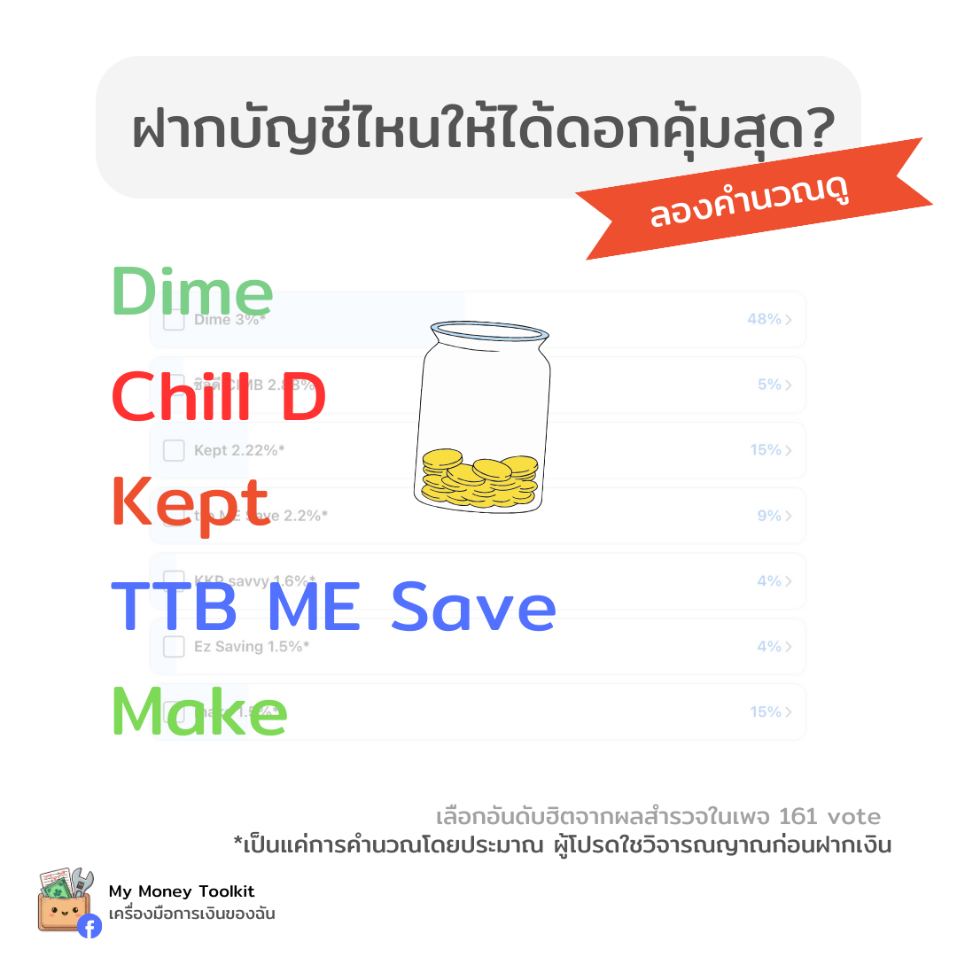 ลองคำนวณฝากบัญชีไหนดอกคุ้มสุด