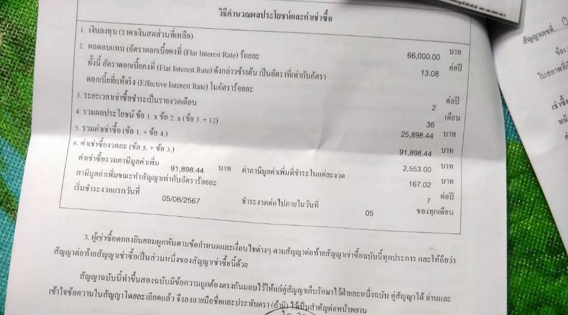 แต่ในใบสัญญาจัดไฟแนนซ์ คิด 66,000
