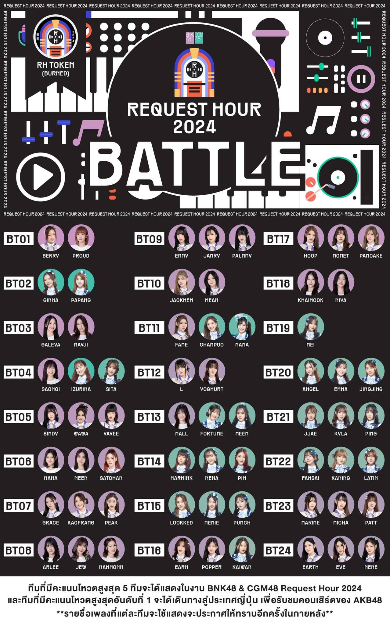ทีมที่มีคะแนนโหวตสูงสุด 5 ทีมจะได้แสดงในงาน BNK48 & CGM48 Request Hour 2024