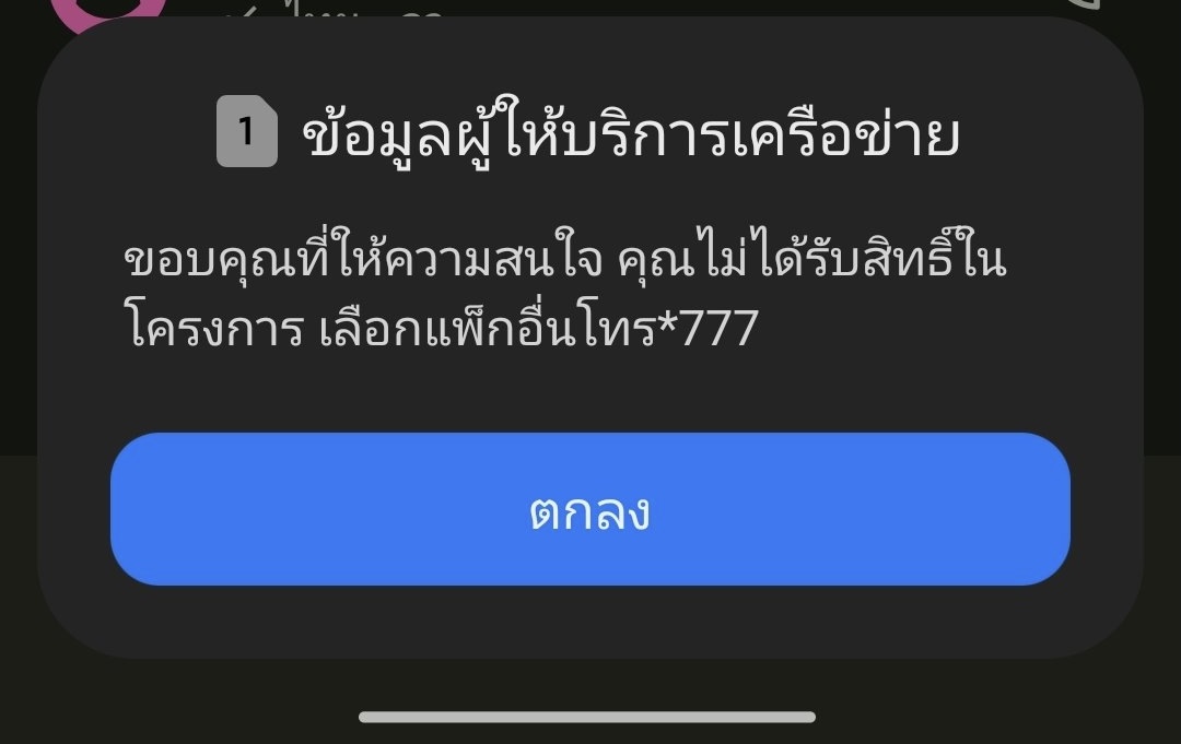 พอจะทำรายการสมัครเน็ต 2 Mbps 7 วัน แล้วขึ้นว่าไม่สามารถทำรายการได้ในขณะนี้ คือไรอะคะ