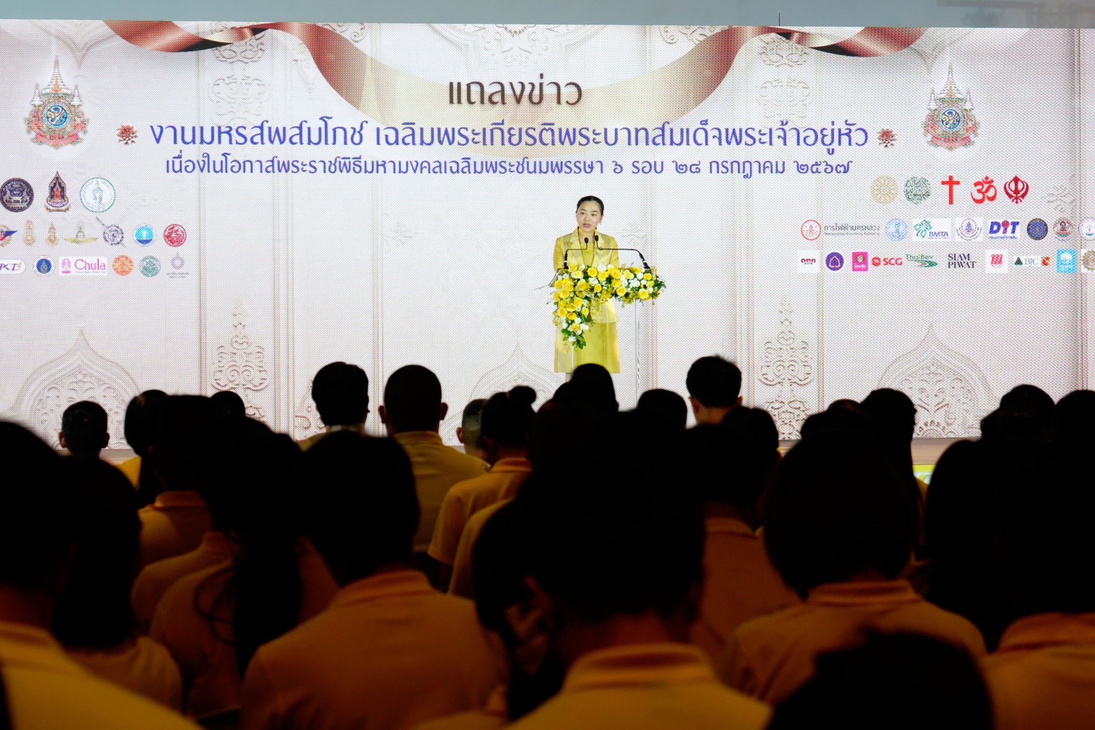 วันที่ 3 กรกฎาคม 2567 เวลา 13.30 น. นางสาวสุดาวรรณ หวังศุภกิจโกศล รัฐมนตรีว่าการกระทรวงวัฒนธรรม เป็นประธานงานแถลงข่าวงานมหรสพสมโภช เฉลิมพระเกียรติพระบาทสมเด็จพระเจ้าอยู่หัว เนื่องในโอกาสพระราชพิธีมหามงคลเฉลิมพระชนมพรรษา 6 รอบ 28 กรกฎาคม 2567 โดยมีนางยุพา ทวีวัฒนะกิจบวร ปลัดกระทรวงวัฒนธรรม นางลาลีวรรณ กาญจนจารี ผู้ช่วยรัฐมนตรีประจำกระทรวงวัฒนธรรม นางสาวพลอย ธนิกุล ผู้ช่วยรัฐมนตรีประจำกระทรวงวัฒนธรรม แพทย์หญิงวันทนีย์ วัฒนะ ปลัดกรุงเทพมหานคร ผู้บริหารกระทรวงวัฒนธรรม พลโทธีรพงศ์ ปัทมสิงห์ ณ อยุธยา เจ้ากรมกิจการพลเรือนทหาร นายฐาปน สิริวัฒนภักดี ประธานเจ้าหน้าที่บริหาร บริษัท ไทยเบฟเวอเรจ จำกัด (มหาชน) ผู้แทนหน่วยงานรัฐ เอกชน แขกผู้มีเกียรติ ศิลปินแห่งชาติและนักแสดง เข้าร่วม ณ ห้องแกลอรี 5 หอศิลป์แห่งชาติ กระทรวงวัฒนธรรม