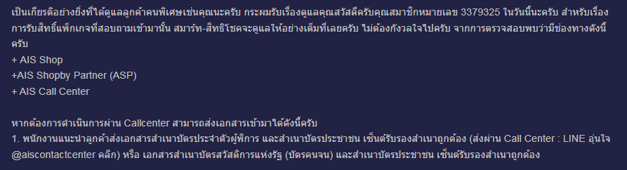 คือเราจะดึงเบอร์กลับมาใช้งาน ติดต่อคัยอีเมล์กับเจ้าหน้าที่แนะนำให้ให้ติดต่อส่งเอกสารทางไลน์ aiscontactcenter แต่ ส่งเอกสารไม่ผ่านสักที ไม่รู้ทำไมไม่ผ่าน ก็ทำตามระบบแล้ว จนปัญญาจริงๆ ใครเคยเจอปัญหาบ้าง