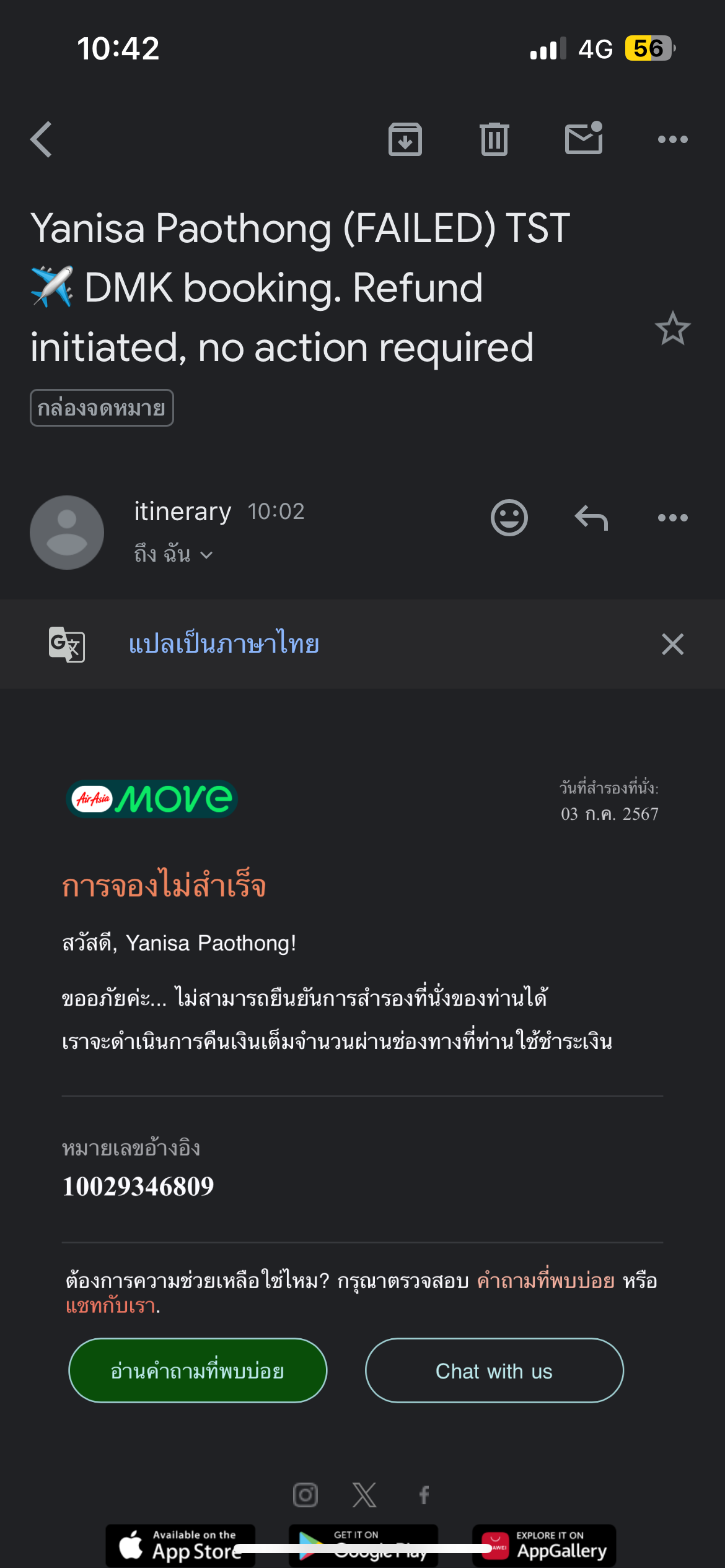 จองตั๋วผ่าน Airasia Move หักเงินแล้ว แต่จองไม่สำเร็จ และไม่ยอมคืนเงิน