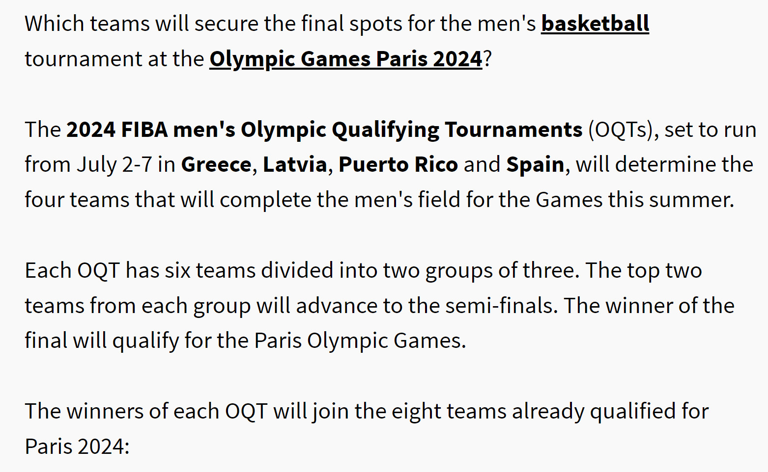 ช่วงนี้ เหงาๆหน่อย แต่แฟนบาสยังมีของดีให้ชม FIBA Olympic 2024 Qualify หา 4 ทีมเข้ารอบสุดท้ายไปฝรั่งเศส