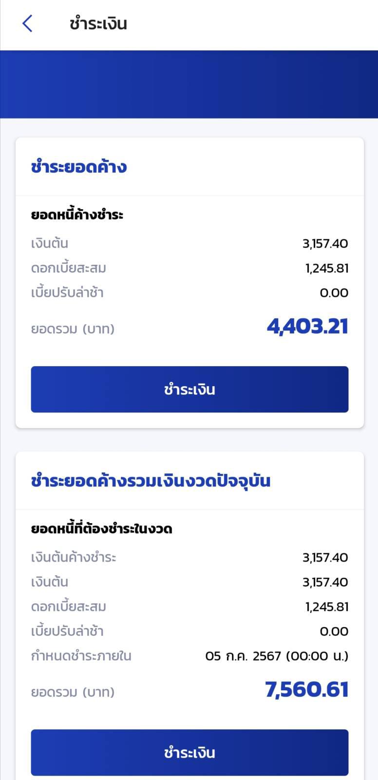 จ่ายก่อนกำหนดตามยอดที่แจ้ง "ยอดรวมที่ต้องชำระ" ตอนกดจ่ายมันจะขึ้นเงินต้นที่ค้างเท่านี้ๆดอกเบี้ยเท่านี้รวมกันแล้วได้ xxx เราจ่ายตามยอดรวมที่รวมให้ แต่พอเช็คตรงรายละเอียดบัญชีดอกเบี้ยค้างชำระไ