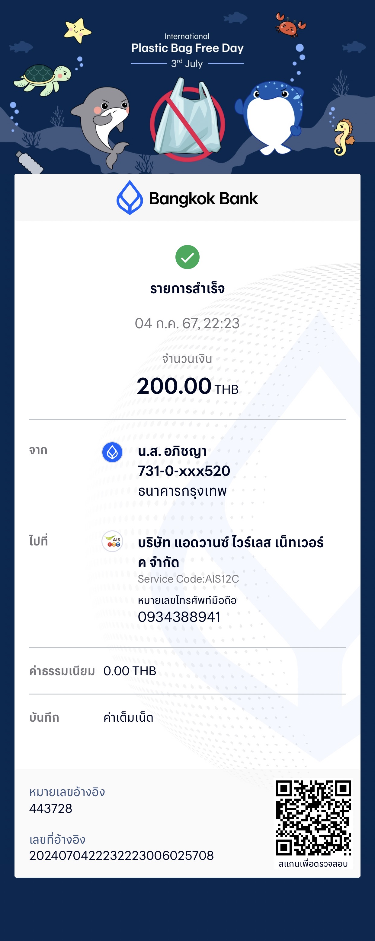 4. วันที่ เวลาเติมเงิน วันที่ 4/07/24 เวลา 22.23