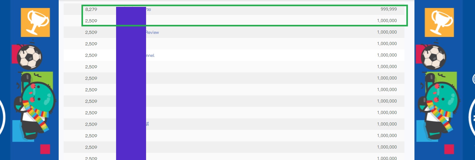 Credit 1,000,000 กับ 999,999 ต่างกัน 5 พันกว่าอันดับ แสดงว่ามีคนที่มี Credit 1ล้านคงที่ เกือบ 6 พันคน hahah