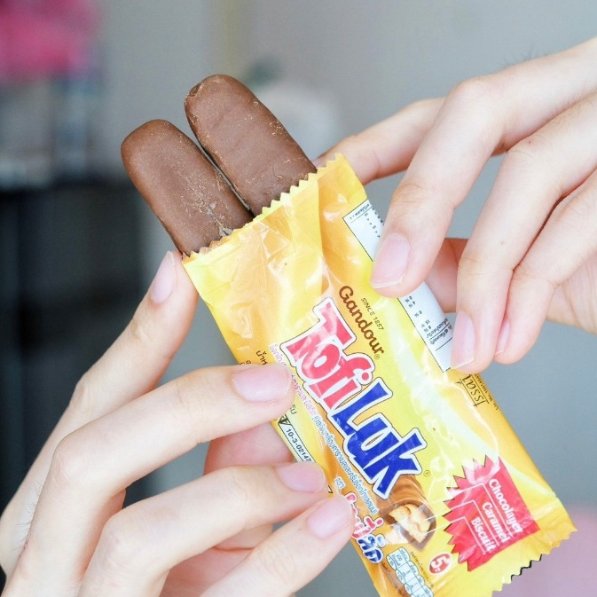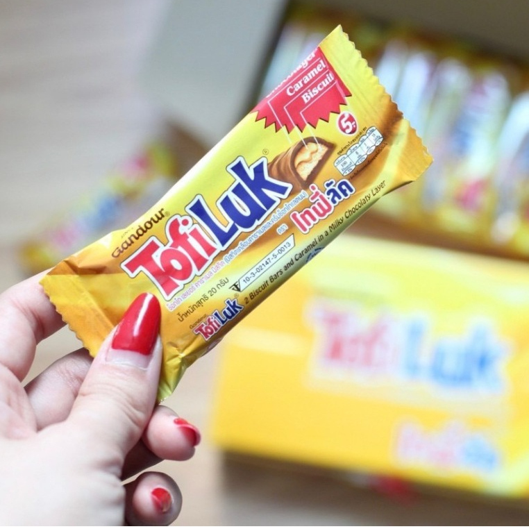 🥖🍫 Tofiluk 20 กรัม (1 กล่อง) โทฟี่ลัค บิสกิตเคลือบคาราเมลและครีมช็อกโกแลตนม ขนมในตำนาน ย้อนยุค 90 หอมหวานอร่อย 🥖🍫