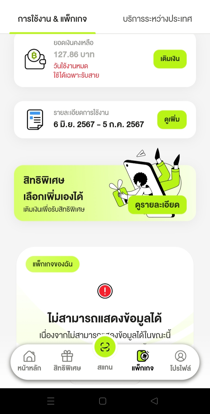 มีปัญหาเรื่องการต่อแพคเกจอินเตอร์เน็ตครับ