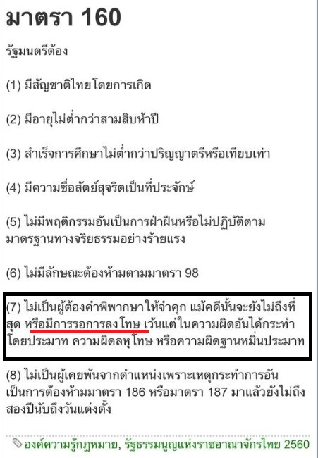 รอลงอาญา ก็เป็น รมต ไม่ได้