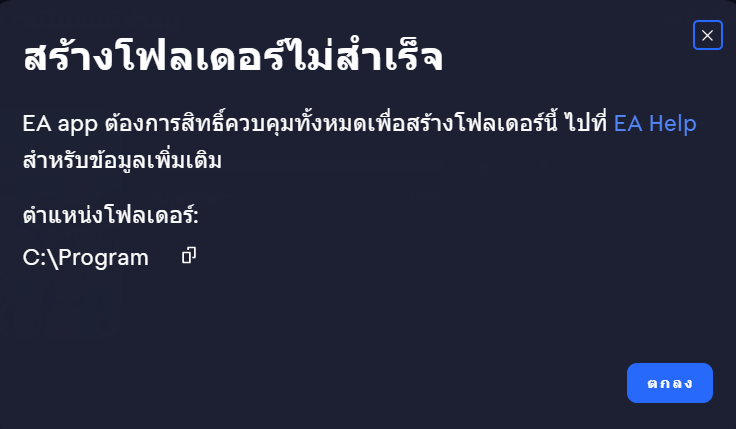 The sims 4ดาวโหลดเเล้ว Permission error แก้ยังไงดีคะ