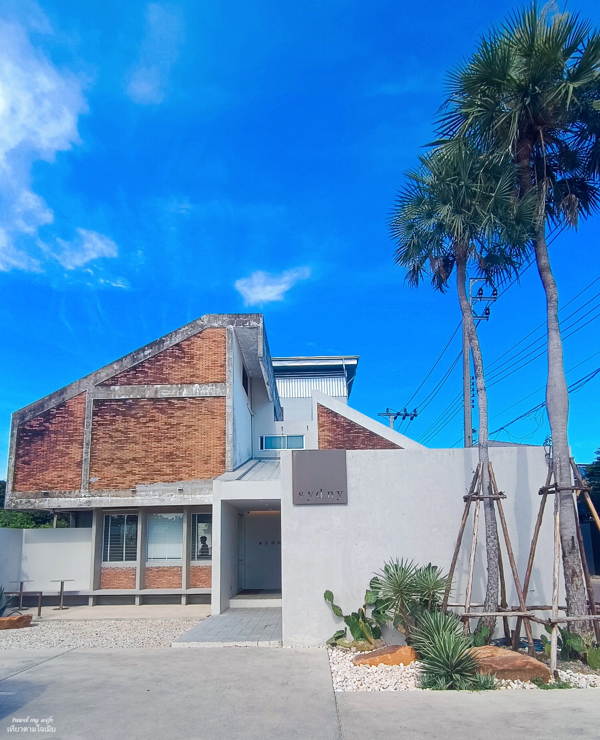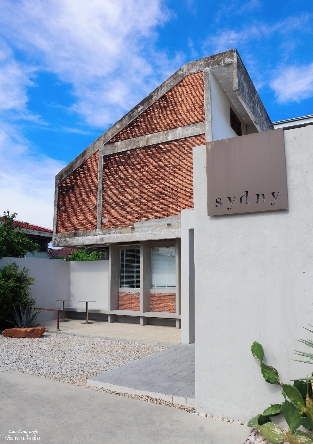 s y d n y คาเฟ่สวย ย่าน ตลิ่งชัน ถนนทุ่งมังกร ร้านคาเฟ่ที่รีโนเวทมาจากตึกเก่า การออกแบบมาในสไตล์โพสต์โมเดิร์น ใช้โครงสร้างอาคารเดิมปูนและอิฐสีส้ม ผสมผสานกัน มีเอกลักษณ์เป็นของทางร้าน