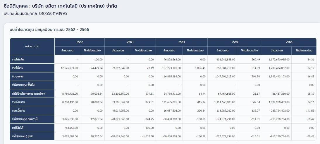 บริษัท อมิตา เทคโนโลยี EA ถือหุ้น 74.5%