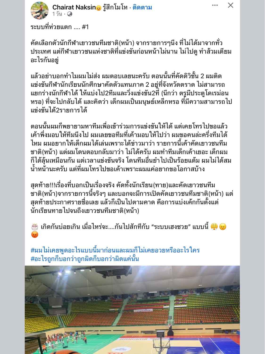ขอชมนักกีฬาไทยก่อนนะคะที่เล่นได้สุดความสามารถและมีสปิริตของจริง วันนี้เห็นนักกีฬาปล่อยน้ำตาออกมาก็อดที่จะร้องไห้ตามไม่ได้ ส่วนนึงคือความผิดพลาดตัวเราเอง แต่อีกสิ่งที่เราขอด่าตามตรงและทำให้ทีมรวนคือระ