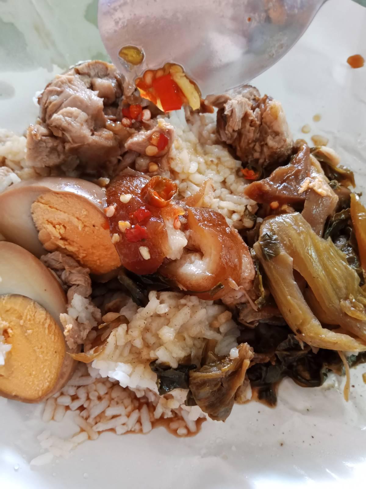เสิร์ฟเมนูโปรดของใครหลายคนกับ ข้าวขาหมูจานใหญ่ 🍚🐷 จัดเต็มทั้งผักดอง ไข่พะโล้ และหมูตุ๋นที่เคี่ยวมาอย่างดี เนื้อสัมผัสนุ่มละมุนลิ้น ชุ่มฉ่ำทุกคำ โป๊ะด้วยหนังหมูนุ่มเด้ง ละลายในปากแบบฟินสุดๆ 🤤 เสริมรสด้