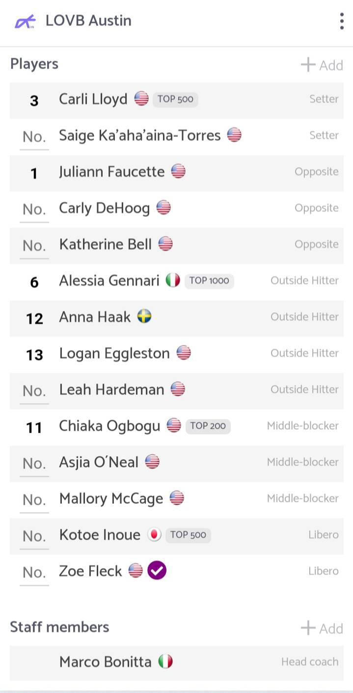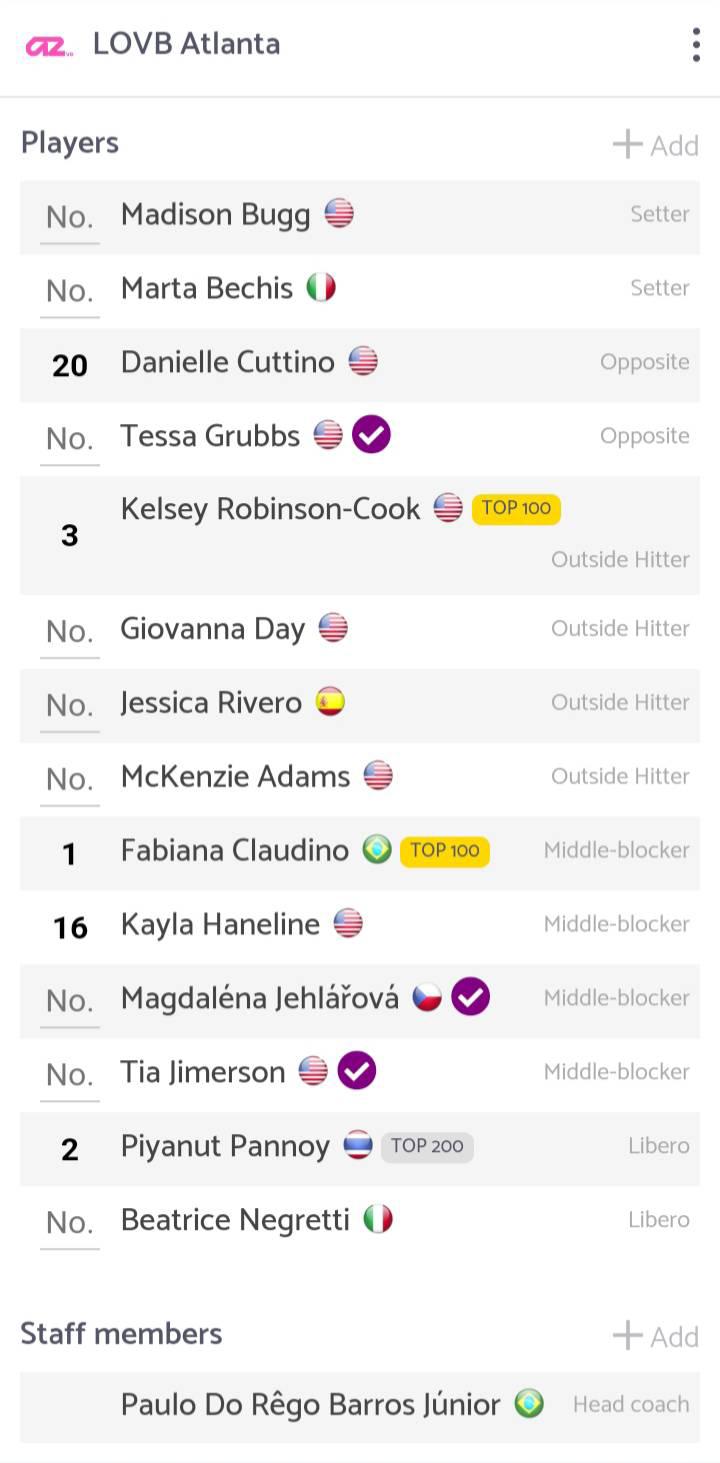 ตอนนี้ผู้เล่น 14 คนจากทั้ง 6 ทีมยืนยันเกือบทุกทีมแล้ว เลยมาอัพเดทล่าสุดว่าตอนนี้ทีมไหนแข็งแกร่งที่สุดกันค่ะ LOVB Atlanta แข่งในบ้านที่สนาม Gateway Center Arena, Atlanta, Georgia ความจุ 3,500 คน ภาพรว