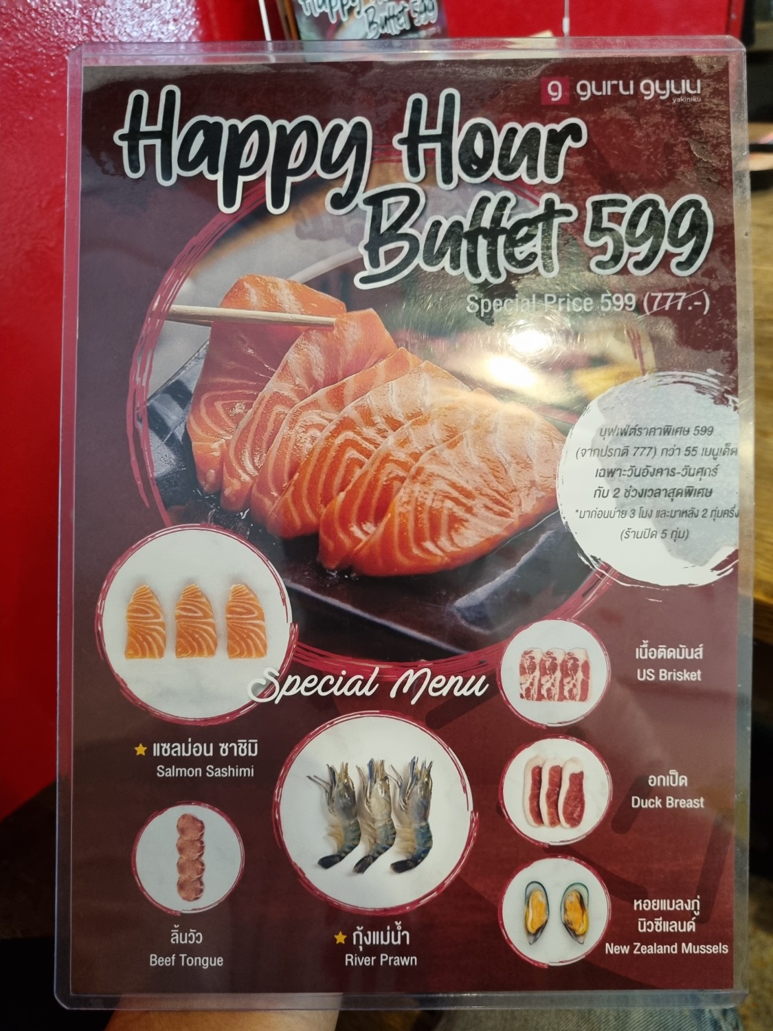 ผมมีโอกาสได้หยุดวันธรรมดาก็เลยแอบดอดหาบุฟเฟ่ต์วันธรรมดากิน ก็เหมาะเจาะพอดีกับที่ร้านนึงกำลังเล่นโปรอยู่ นั่นคือ Guru Gyu