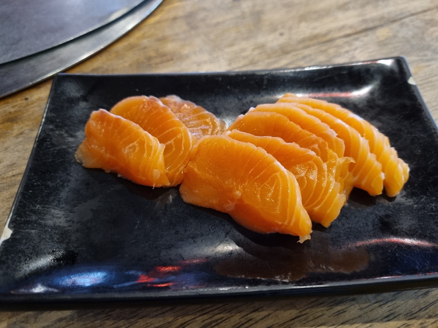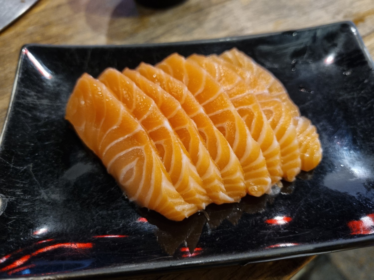 แซลมอนกลิ่นและมันเกรดแบบแซลมอนตามห้าง รสคาวพอสมควร แต่ด้วยว่ารออาหารนานหิว จึงซัดหมดอย่างไว