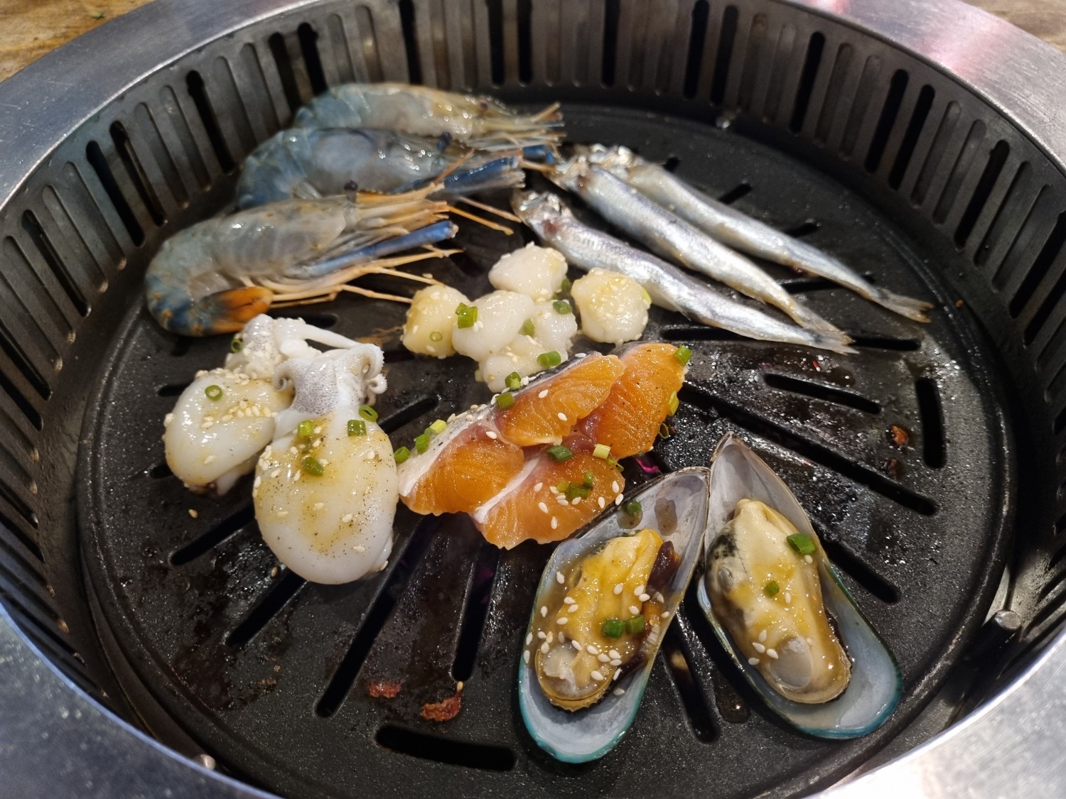 ร้านเนื้อย่างแนวญี่ปุ่นที่อยู่ละแวกเส้นสะพานควาย และโปรที่ว่านั่นคือ 599 เวลา เที่ยงถึงบ่ายสามในกับแซลมอนและกุ้งไม่อั้น