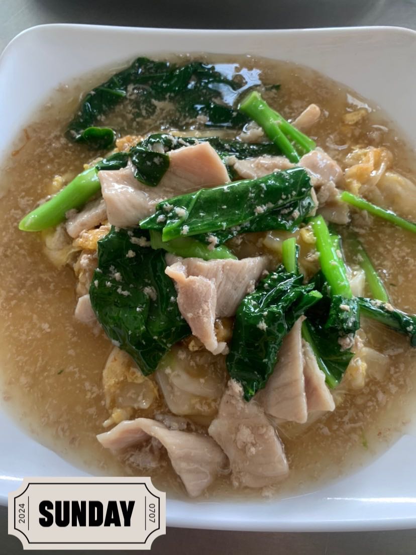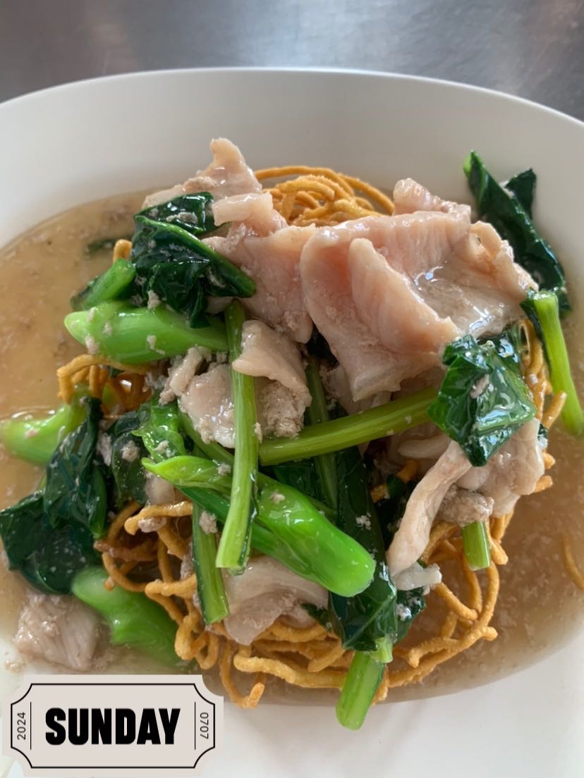 เส้นก๋วยเตี๋ยวจะนุ่มเข้ากับน้ำราดหน้า และหมูหมักจะเข้ารสกว่าทะเล เพื่อนๆคิดว่าอย่างไร บอกกันได้ฮะ