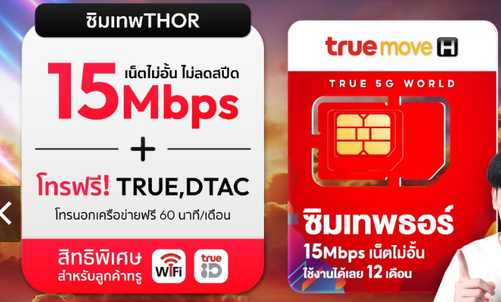 ต้องการต่อโปรเน็ต 15Mbps ซิมเทพธอร์ TrueMove