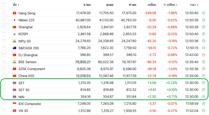ตลาดเอเชีย เขียวท่วหน้า แต่ตลาดหุ้นไทยแดง