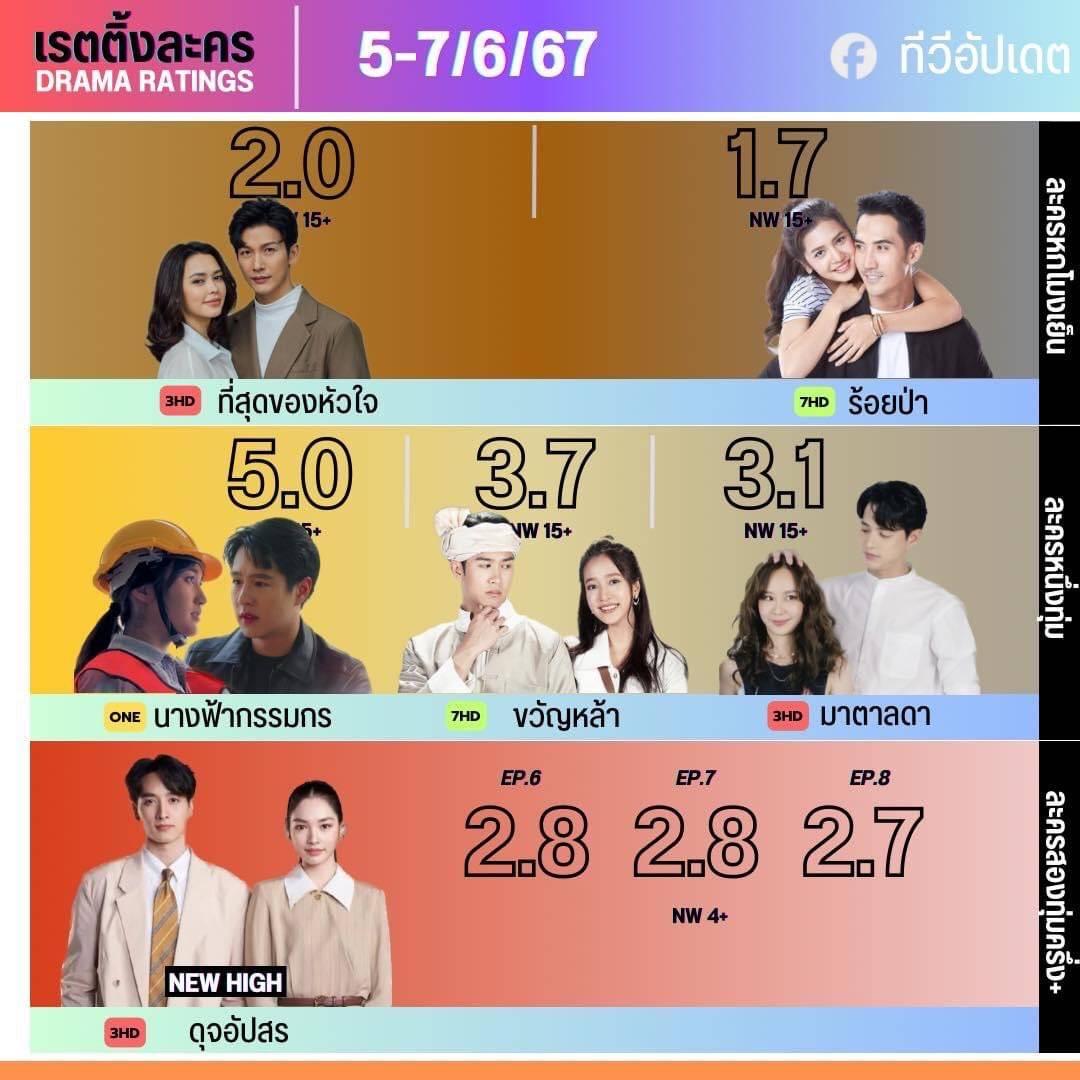 เรตติ้งละคร 5ก.ค.2567 โดยทีวีอัปเดต