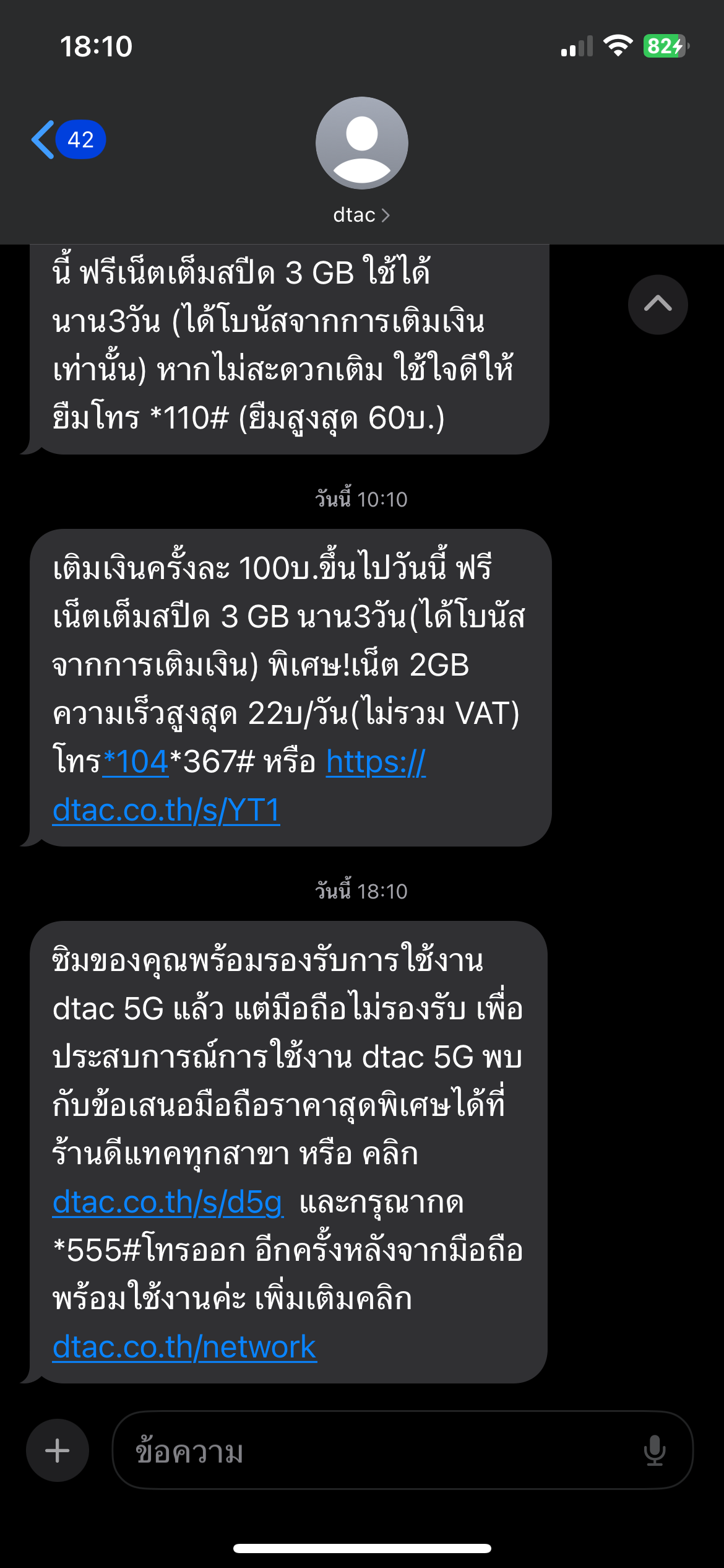 สวัสดีค่ะ จะสอบถามค่ะ คือจะเปิดใช้งาน 5G Dtac ไม่ได่ค่ะ กด *555# SMS แจ้งว่า ซิมของคุณพร้อมรองรับการใช้งาน dtac 5G แล้ว แต่มือถือไม่รองรับ เพื่อประสบการณ์การใช้งาน dtac 5G พบกับข้อเสนอมือถือราคาสุดพิ