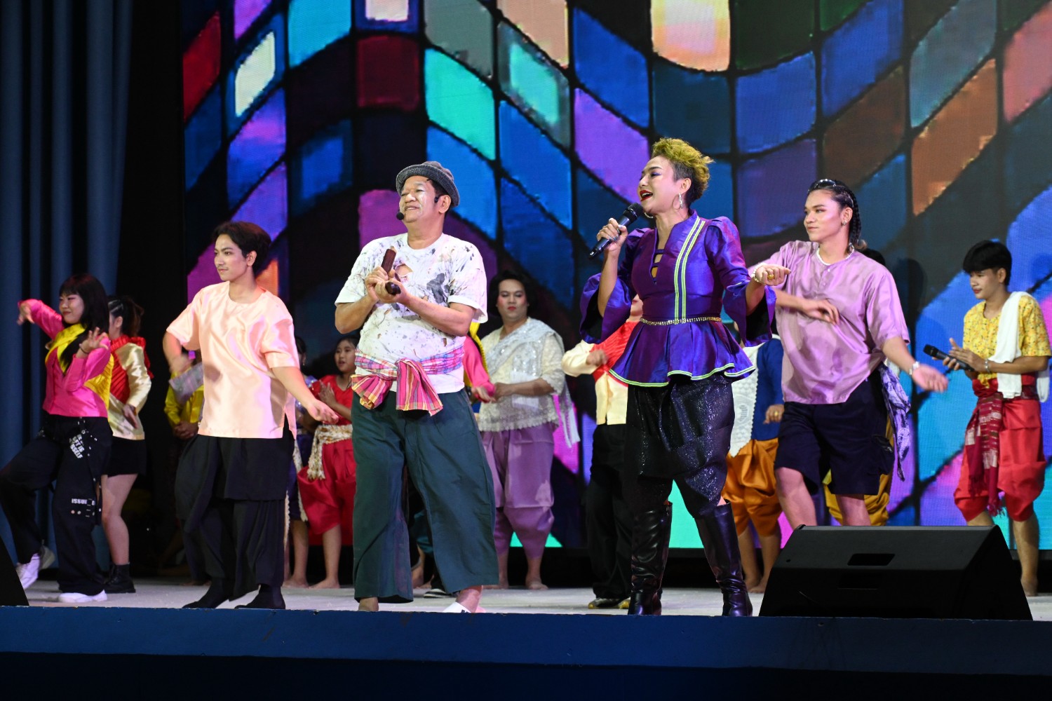 วันจันทร์ที่ 8 กรกฎาคม 2567 เวลา 14.00 น. นายประสพ เรียงเงิน ประธานในพิธีเปิด กล่าวว่า เนื่องในโอกาสมหามงคลพระบาทสมเด็จพระปรเมนทรรามาธิบดีศรีสินทร มหาวชิราลงกรณ พระวชิรเกล้าเจ้าอยู่หัว ทรงเจริญพระชนมพรรษา 72 พรรษา 28 กรกฎาคม 2567 นับเป็นวาระมงคลยิ่งที่พสกนิกรจะได้ร่วมเฉลิมพระเกียรติ แสดงความสำนึกในพระมหากรุณาธิคุณต่อพระบาทสมเด็จพระเจ้าอยู่หัว ที่ทรงสืบสานพระราชกรณียกิจเพื่อธำรงไว้ซึ่งมรดกทางศิลปวัฒนธรรมอันทรงคุณค่าของชาติ และเพื่อร่วมสานต่อผลงานศิลปินแห่งชาติ สาขาศิลปะการแสดง ประเภทเพลงพื้นบ้าน รวมทั้ง ส่งเสริมให้ศิลปินแห่งชาติ และศิลปินพื้นบ้าน ได้มีโอกาสแสดงออกถึงอัตลักษณ์ทางศิลปะการแสดง เพื่อเป็นการสร้างพื้นที่เชื่อมโยงความสัมพันธ์ระหว่างศิลปินแห่งชาติ ศิลปินพื้นบ้าน นักเรียน นักศึกษา และประชาชน ซึ่งนำไปสู่การเรียนรู้มรดกทางศิลปวัฒนธรรมของชาติอย่างลึกซึ้ง เพื่อให้เกิดความรัก ความภาคภูมิใจในศิลปวัฒนธรรมของชาติ และสนับสนุนการสร้างพลัง Soft Power สาขาศิลปะของประเทศต่อไป