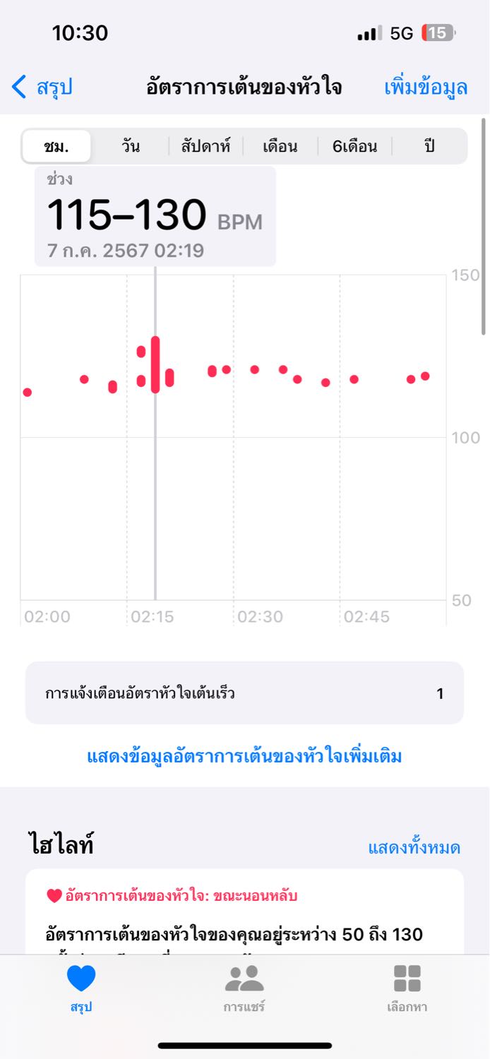 แต่ครั้งนี้เป็นเช้าที่ไม่ปกติค่ะ นาฬิกาเราแจ้งเตือนขึ้นมาว่า หัวใจเราเต้นแรงผิดปกติ ขณะที่เราหลับ เราคิดว่าคงไม่ขนาดนั้น แต่….