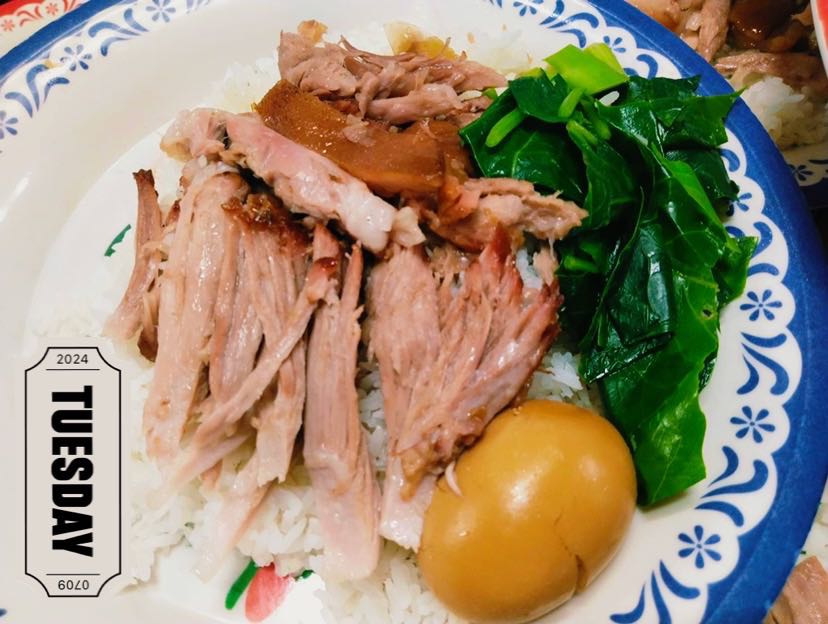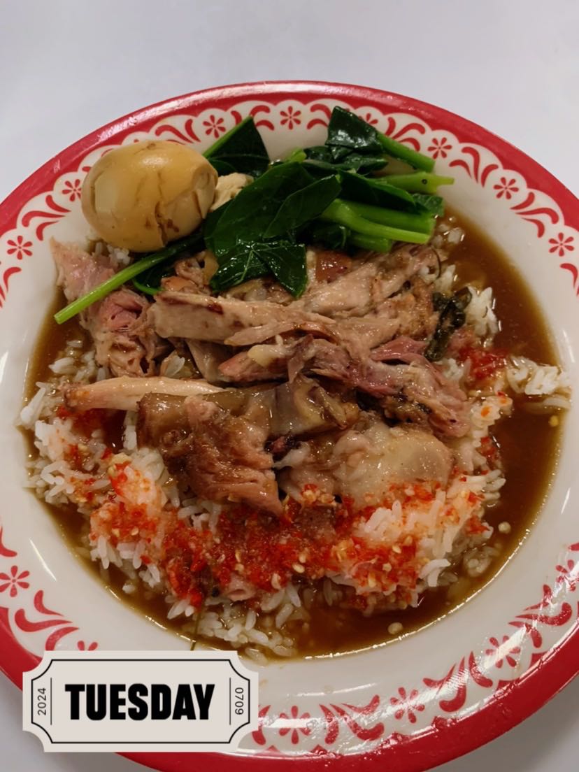 อาหารเที่ยงบริษัทฟรี: ข้าวขาหมูไข่พะโล้ตักน้ำราดเอง