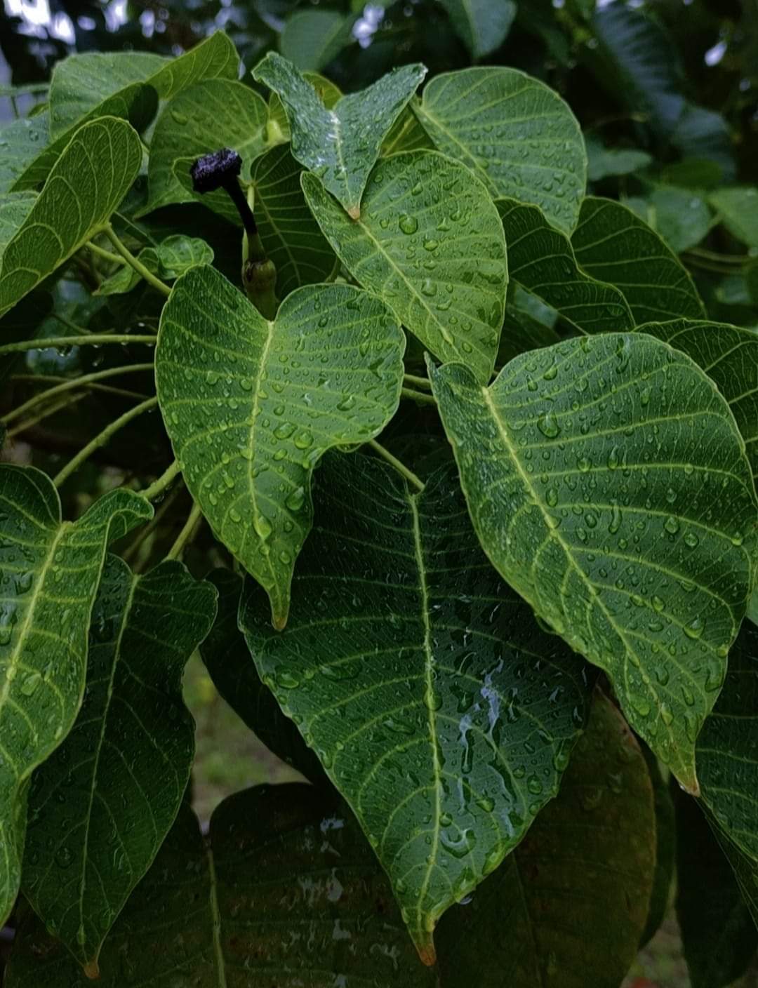 ต้นโพธิ์ศรี ได้รับน้ำฝนชุ่มฉ่ำ