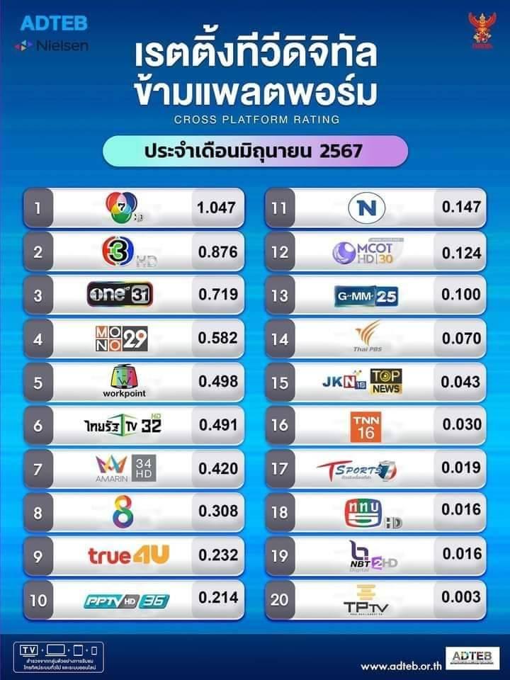 เรทติ้ง ข้ามเเพลตฟอร์ม มิถุนายน 2567