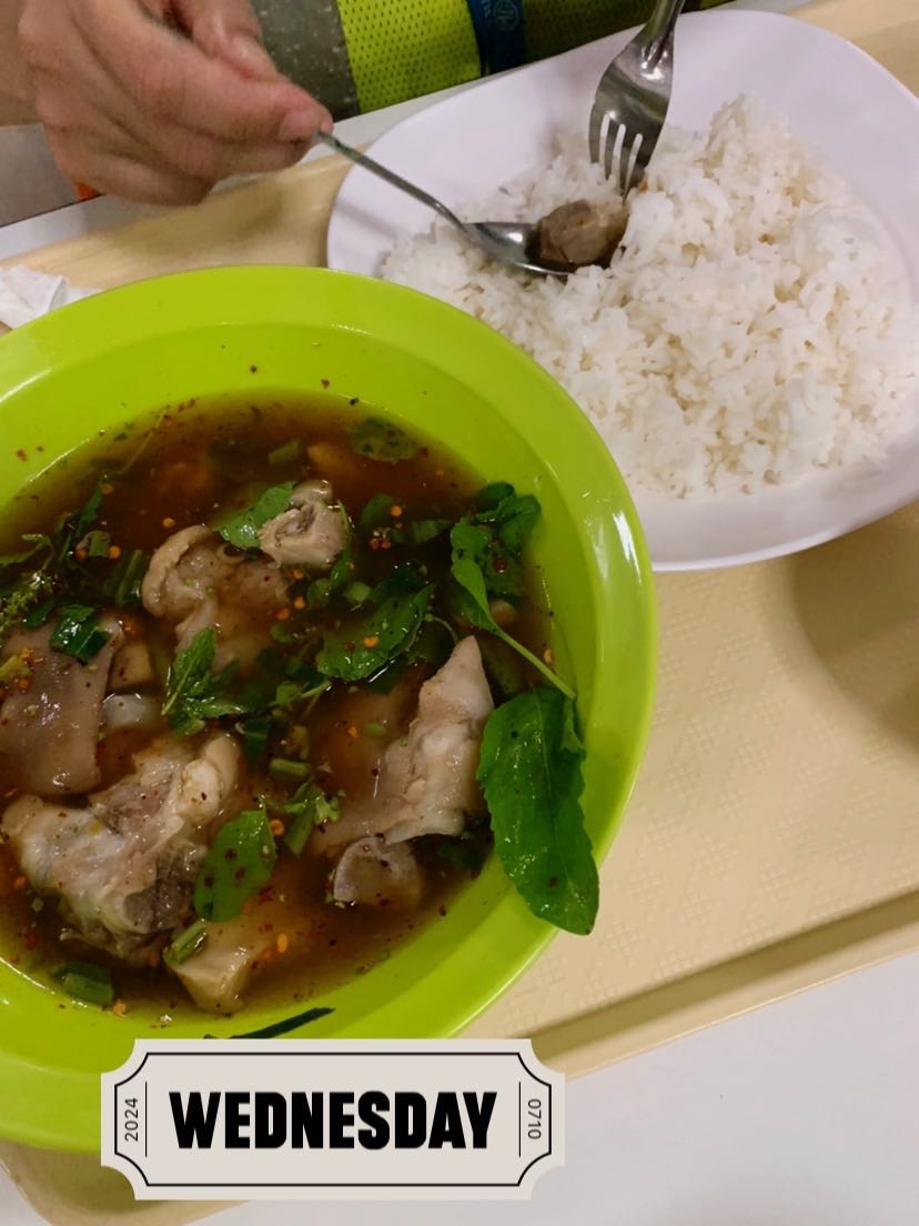 อร่อยกับเมนูง่ายๆ แต่มื้อเที่ยงนี้คือดีงามเกินคาด เริ่มจาก ต้มยำไก่ รสจัดจ้าน หอมกลิ่นตะไคร้ ใบมะกรูด และพริกขี้หนูที่ช่วยปลุกความสดชื่นในคำแรก ตามด้วย ทอดมันปลากราย เด้งแน่นกำลังดี เคี้ยวเพลินจนหยุดไ