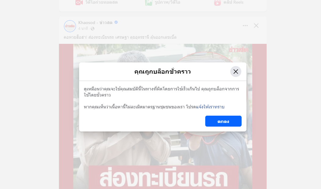 Facebook ขึ้นว่า คุณถูกบล็อกชั่วคราว