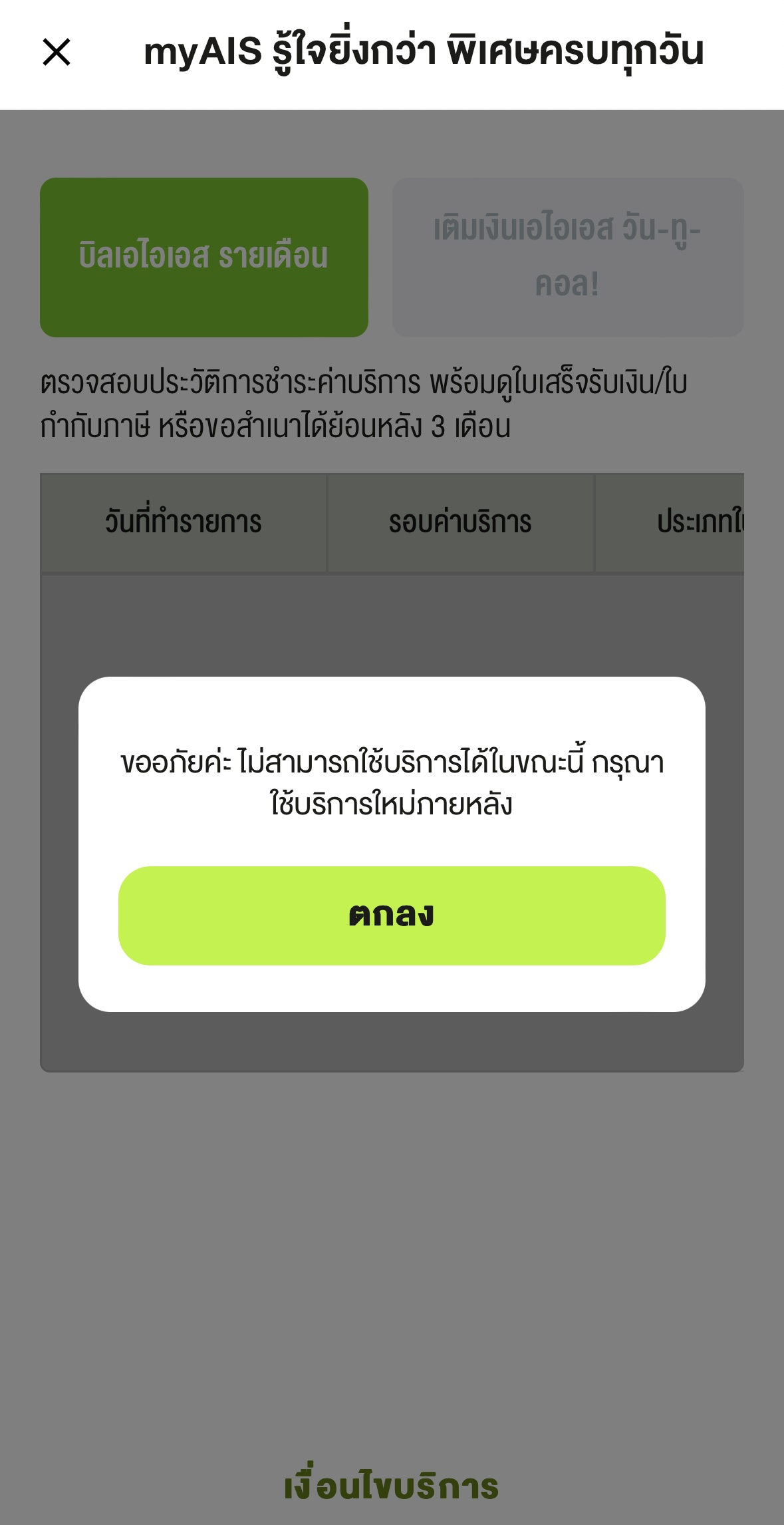 My ais จะเช็คยอดชำระบิลแต่ขึ้นแบบนี้ต้องทำยังไงครับ