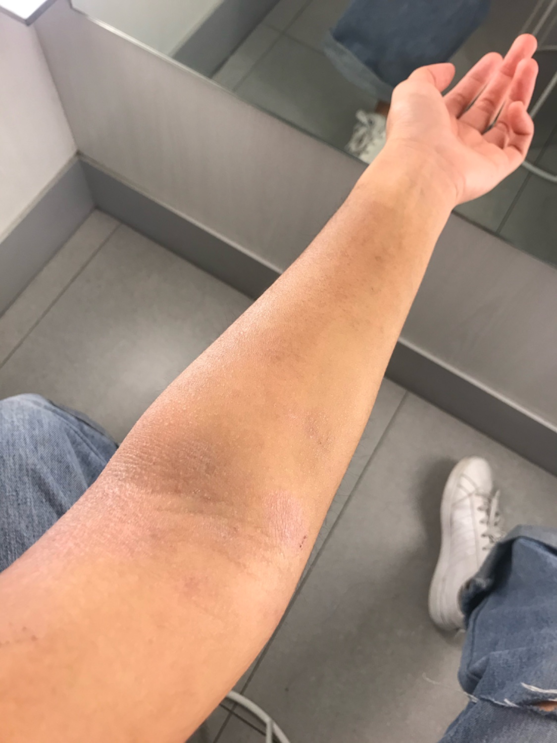 สภาพผิวก่อนเรามาเจอผลิตภัณฑ์ค่ะสังเกตว่า ผิวเราแพ้หนักมาก ผิวแห้งมีรอยรอยแดง เป็นจ้ำๆเลยค่ะ และสเก็ดผิวที่ลอกสยองมาก