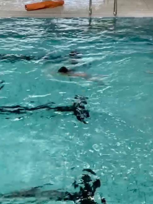 ตอนนี้ลูกสาวอยู่คลาสสำหรับคนที่จะสอบใบประกาศBนะคะ ซึ่ง จะมีการหงายหลังลงสระ ระยะทางที่ต้องว่ายจะไกลขึ้นทุกท่า อุโมงค์ใต้น้ำคือยาว7 เมตรครึ่ง และต้องว่ายผ่านอุปสรรคเหนือน้ำ ว่ายๆอยู่ปล่อยตัวจมดิ่งอีกหนึ่งครั้ง