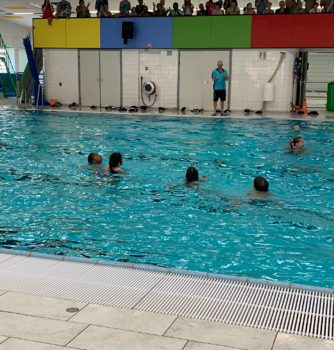 ต้องบอกให้เข้าใจว่าเรียนว่ายน้ำของที่นี่ไม่ได้เรียนเพื่อเป็นการกีฬา แต่มันคือการว่ายน้ำเพื่อเอาตัวรอดค่ะ เด็กๆที่ว่ายน้ำได้แล้วจะต้องสอบเอาใบประกาศ