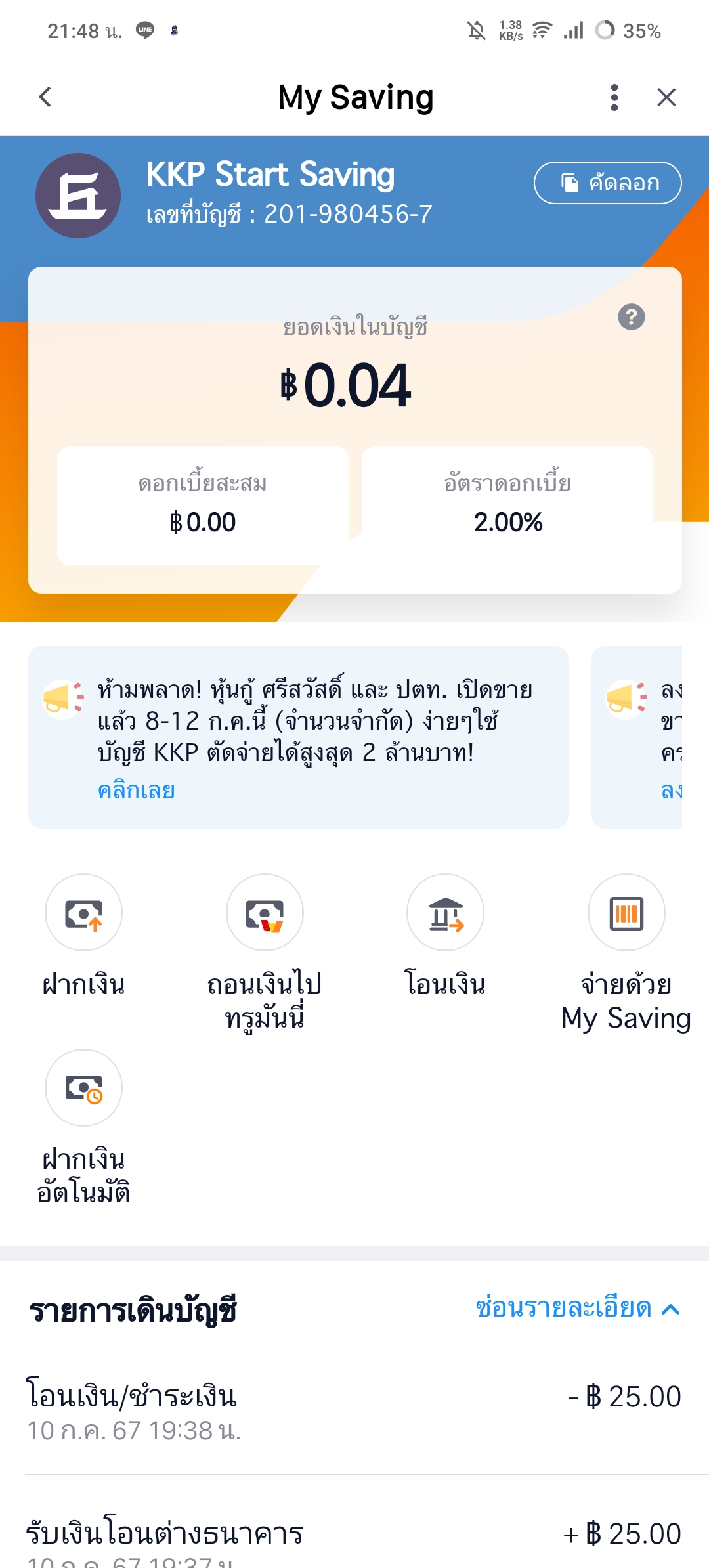 เงินไม่เข้าบัญชีธนาคารเกียรตินาคิน