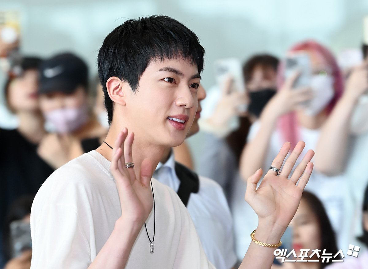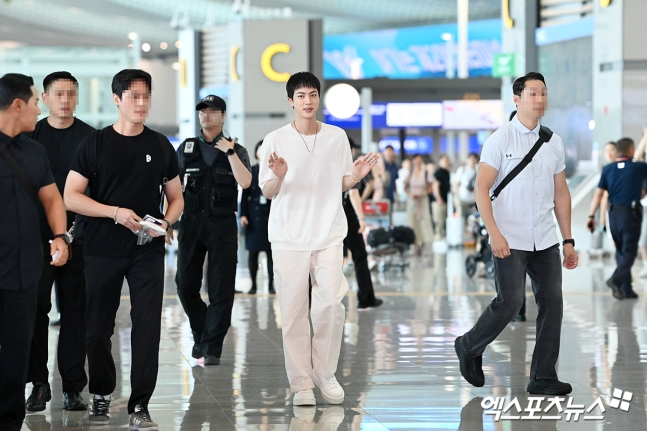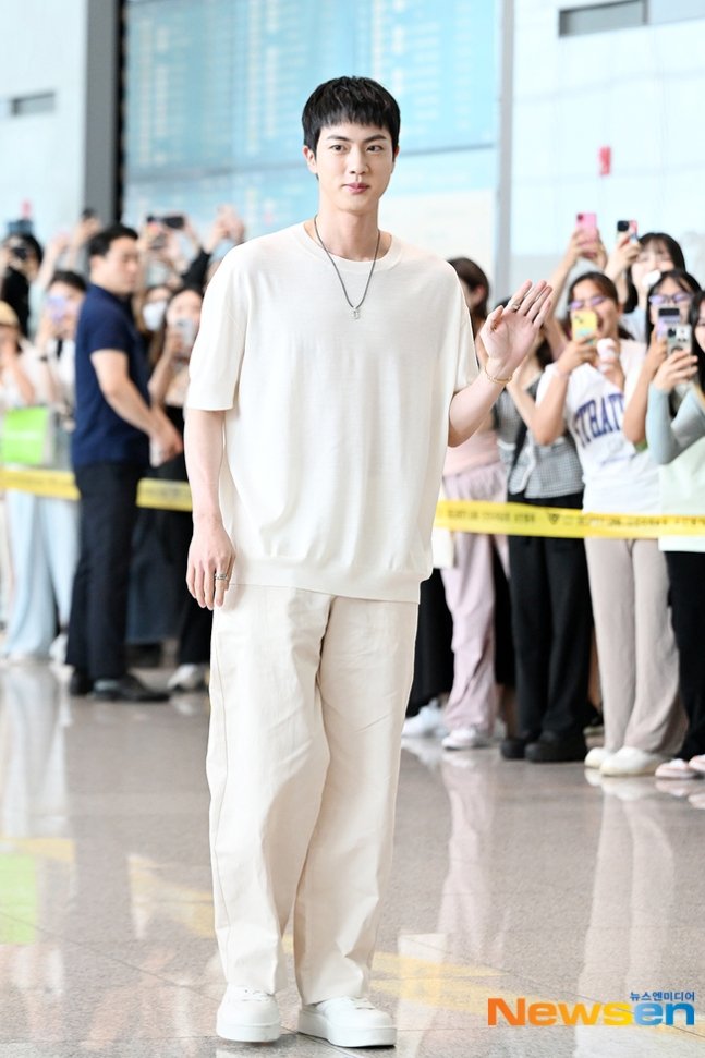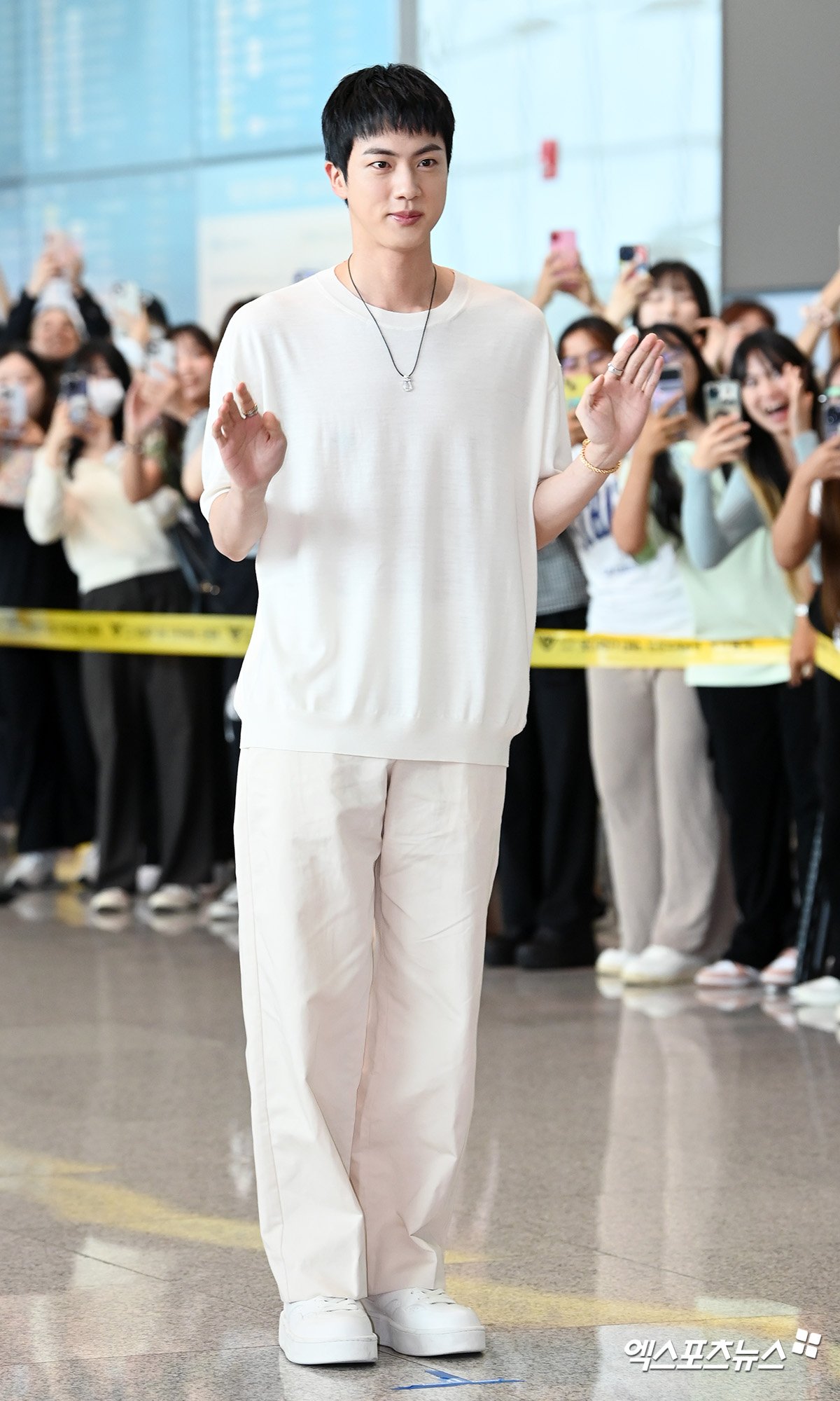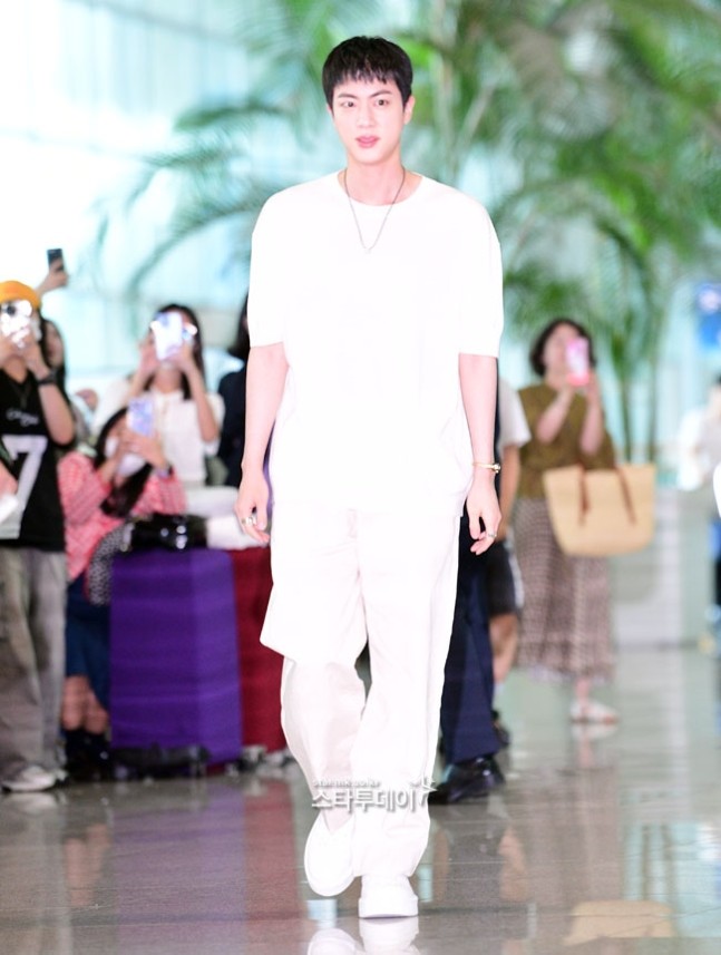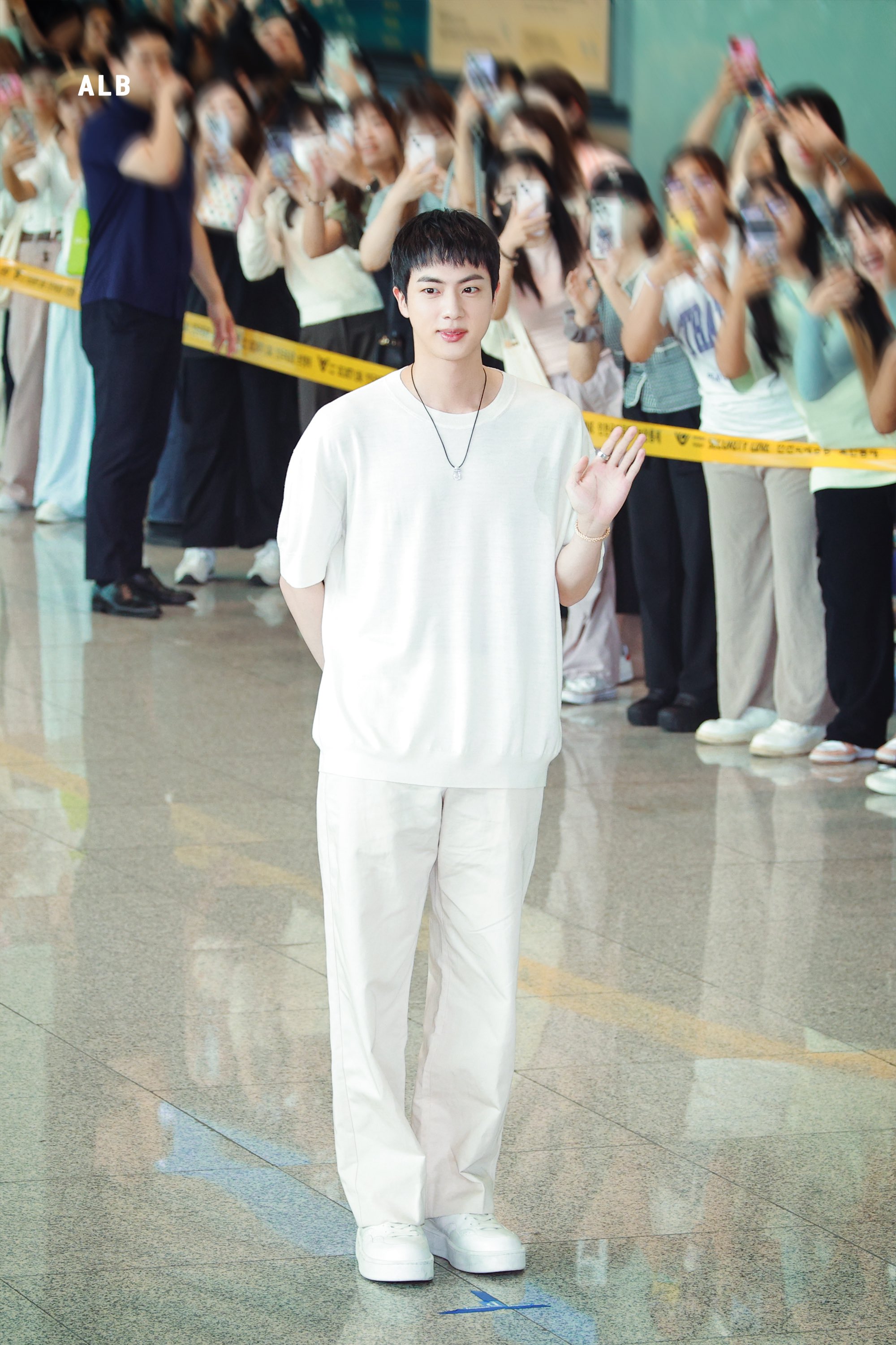 JIN BTS 🛫 ออกเดินทางจากสนามบินอินชอนไปยังปารีส 🗼🗽 สำหรับการวิ่งคบเพลิงโอลิมปิก 2024