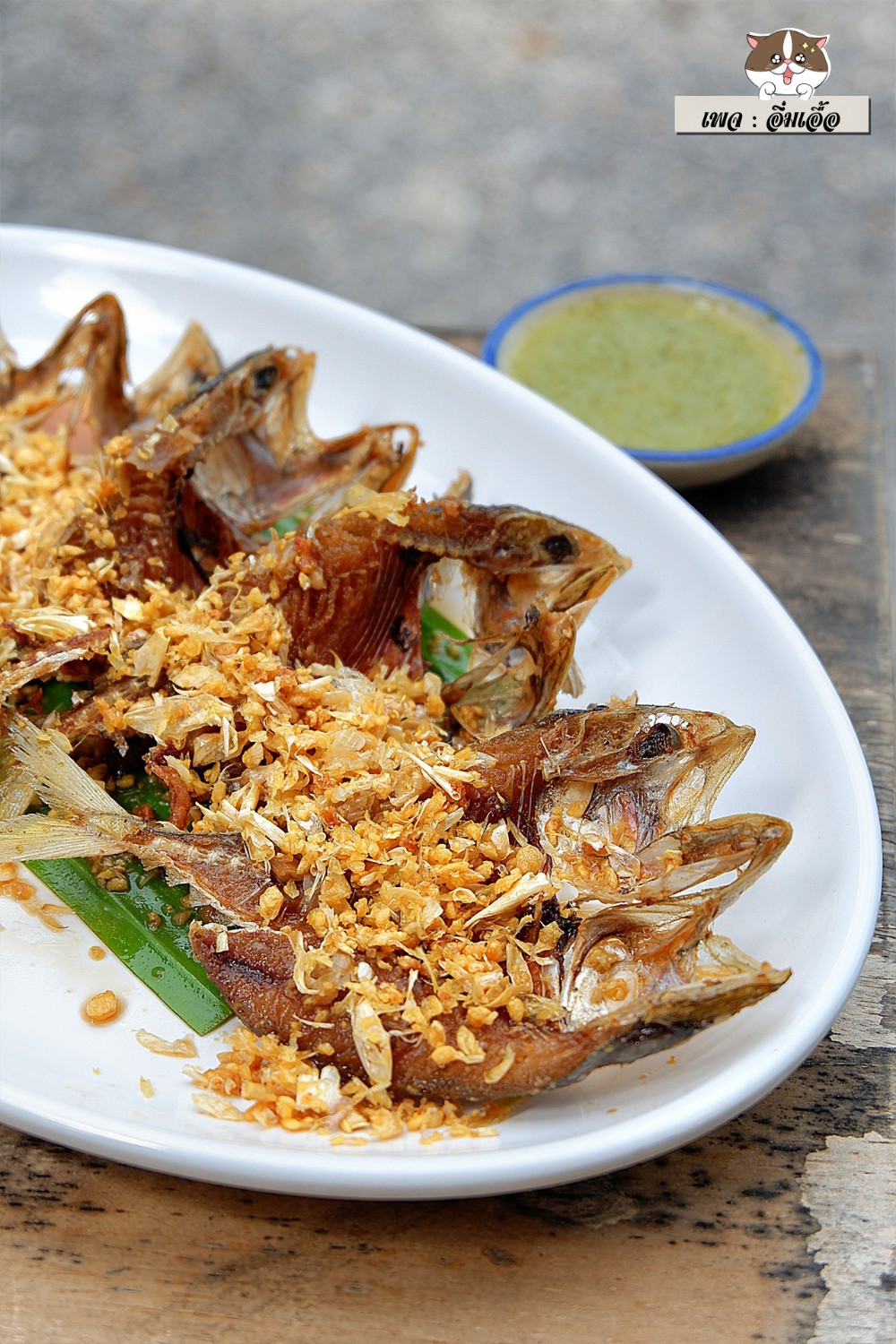 🐟ปลาทูทอด กระเทียม 150.- ปลาทูตัวเล็กผ่าหลังแล้วทอดกรอบ โรยด้วยกระเทียมเจียว จิ้มด้วยน้ำจิ้มซีฟู้ด แม่เจ้า มันเริ่ดมาก