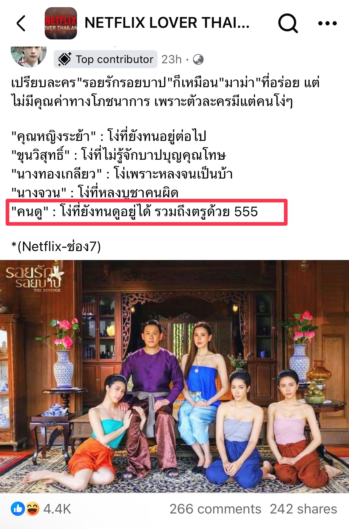 จากโพสต์เพจนักวิจารณ์ค่ะ