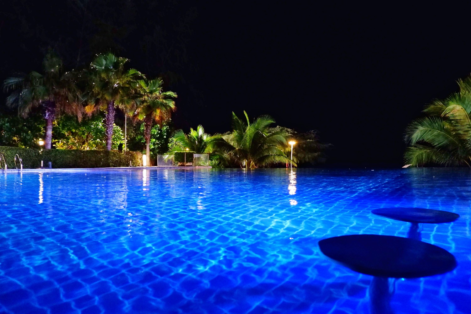 ทานข้าวอิ่มแล้ว ฝนเริ่มซา ฟ้าเริ่มมืด เปลี่ยนชุดลงน้ำกันเลย สระอยู่ข้างๆร้านอาหารนี่แหล่ะ