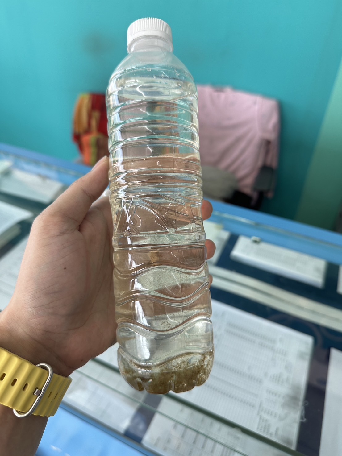 3. ไม่เคยส่งตรวจคุณภาพน้ำ แต่จะมีกลิ่นคาวนิดๆ และมีตะกอนตามภาพครับ