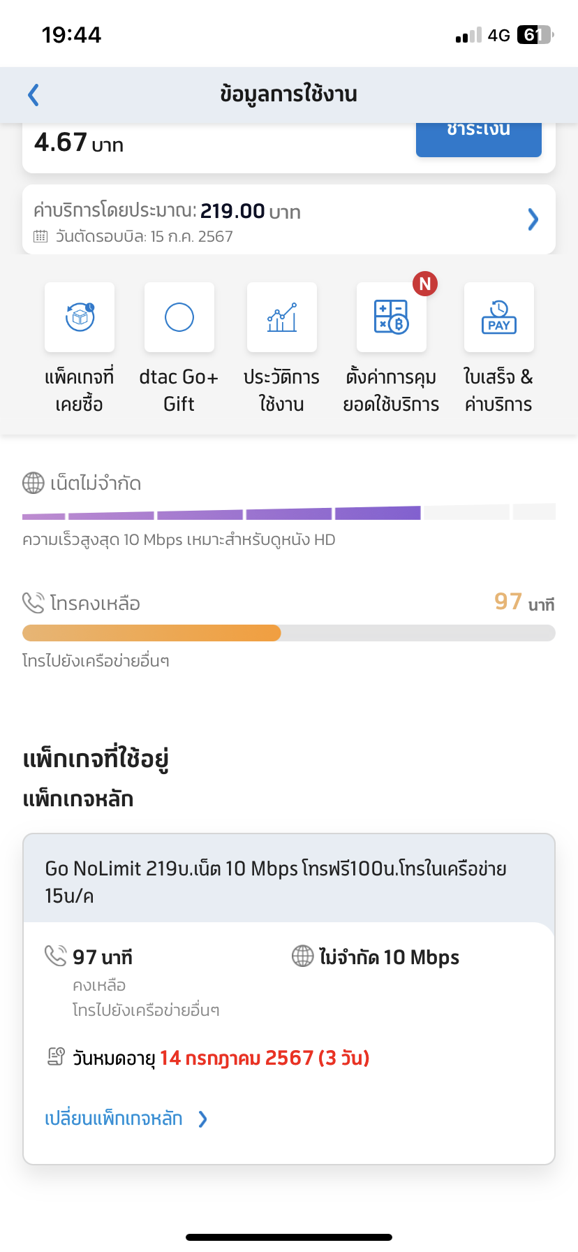 ตอนนี้ยอกเติม 599 บาทแล้วค่ะ ยังไม่ได้มีการใช้งานอะไรใดๆค่ะ
