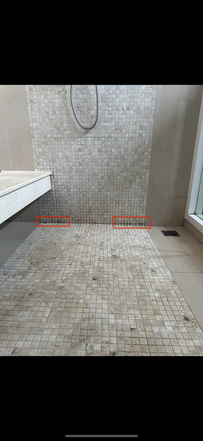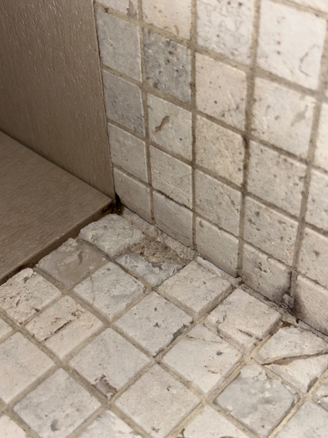 2. ส่วนผนังที่ยังสภาพดีอยู่ แต่ส่วนพื้น ลองเอามือลูบๆดู ร่องยาแนวมันไม่เต็มร่องเหมือนที่ผนัง