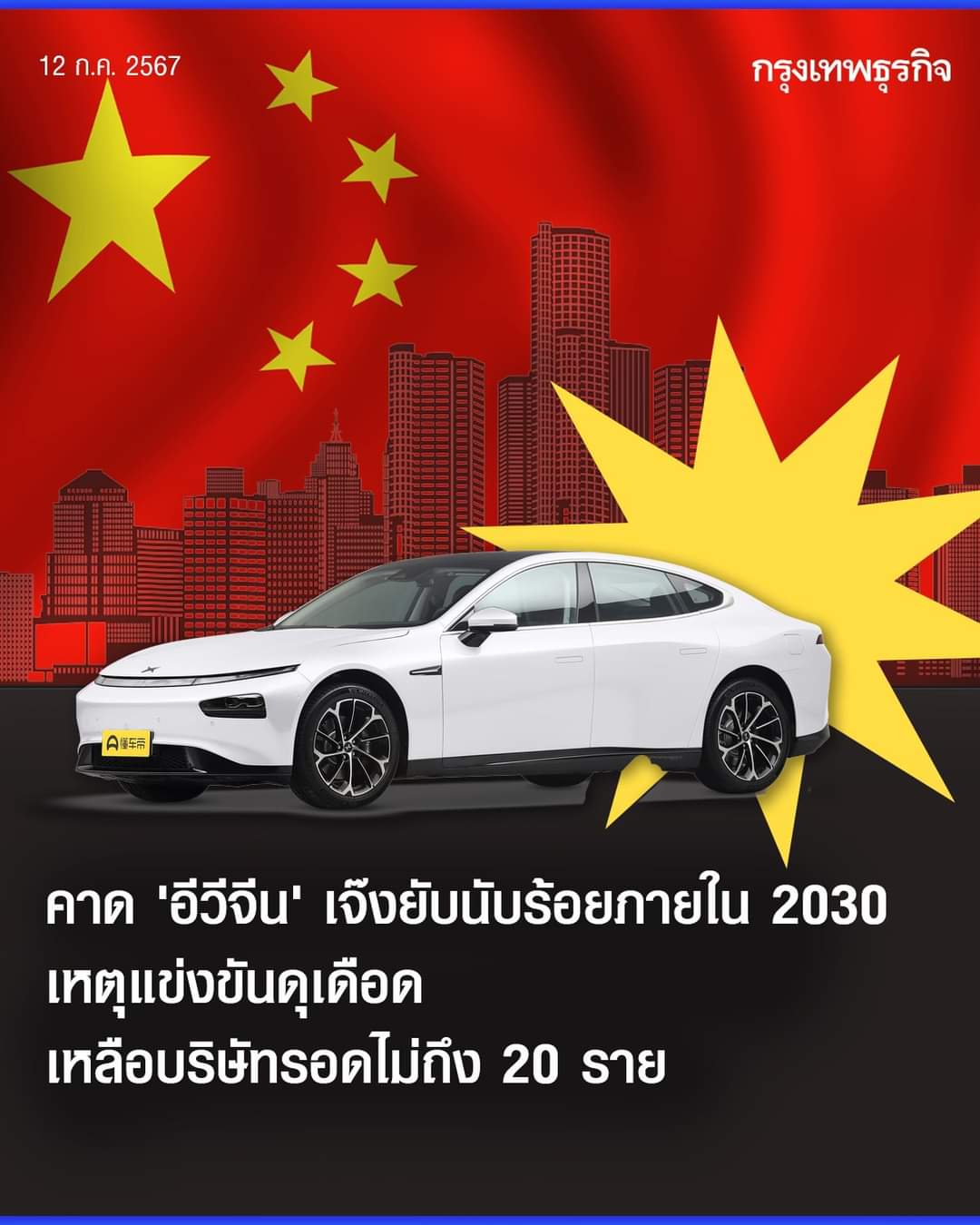 บริษัทวิเคราะห์ประเมินจะมีบริษัทรถยนต์ 'อีวีจีน' เป็นผู้เหลือรอดทำกำไรได้ไม่ถึง 20 ราย จากทั้งหมด 137 รายทั่วประเทศภายในปี 2030 เหตุการแข่งขันดุเดือด ไม่แกร่งจริง-สายป่านสั้น อยู่ไม่ไหว