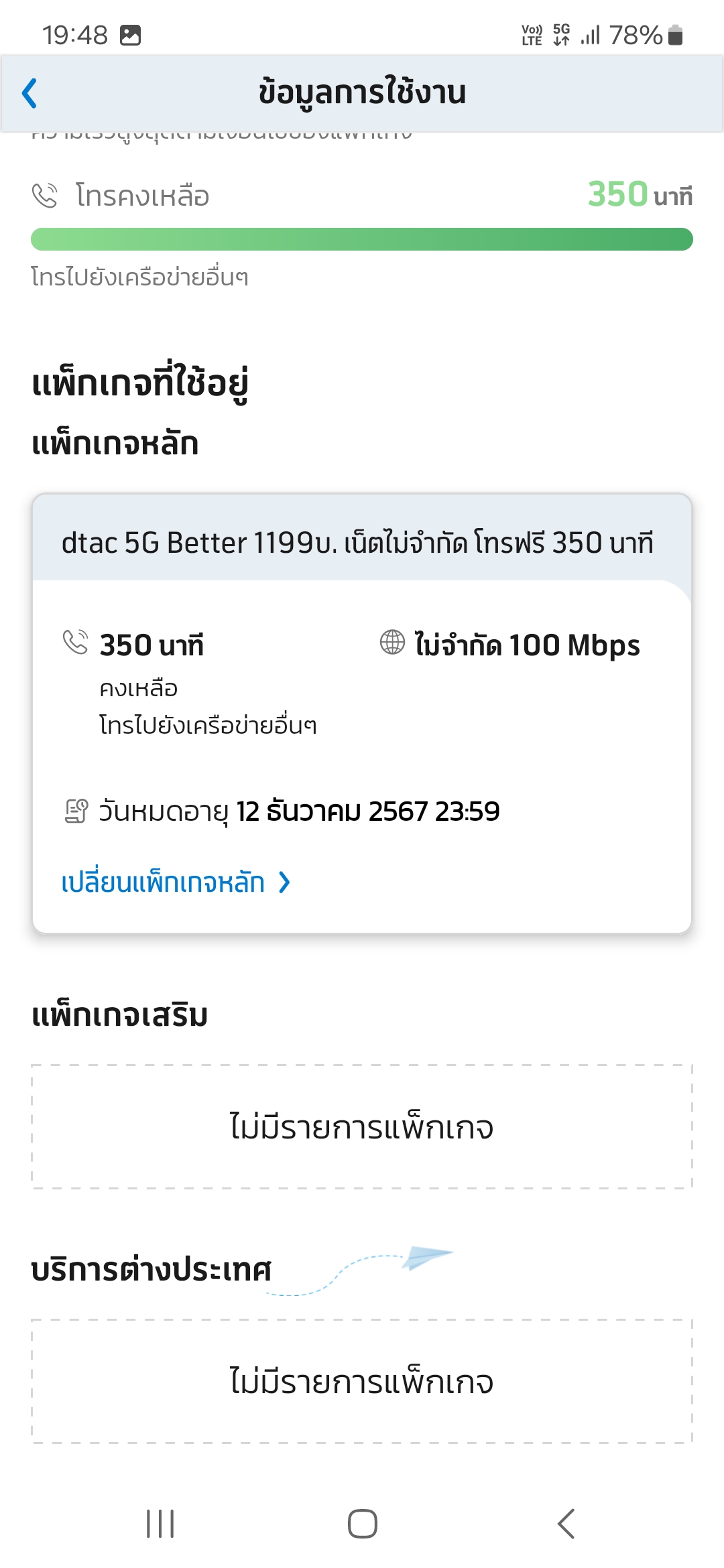 เพิ่มวงเงิน Dtac รายเดือนเบอร์ 094-454-8645